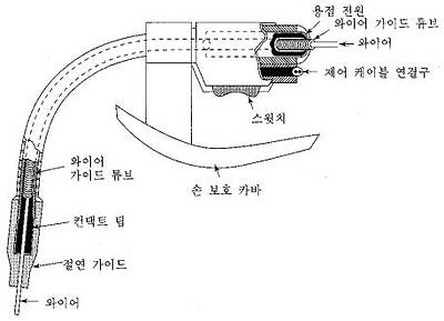 < 그림 2 > 자체보호 FCAW 토치의 구조 |