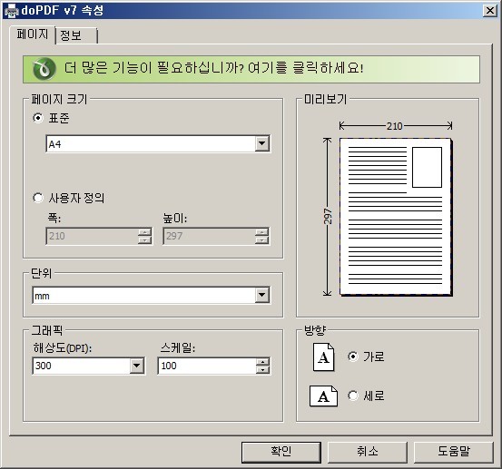 그러면 아래와 같은 화면이 나옵니다. 그래픽에서 해상도를 좀 더 높은 것으로 하면 고화질이 됩니다. 대신 용량이 커지겠지요.. (기본은 300dpi)