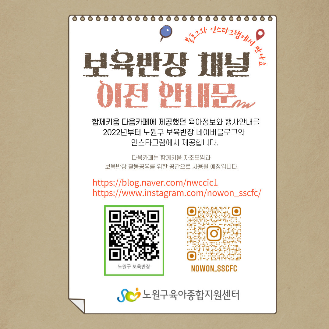노원구 보육반장 블로그와 인스타그램에 놀러오세요~