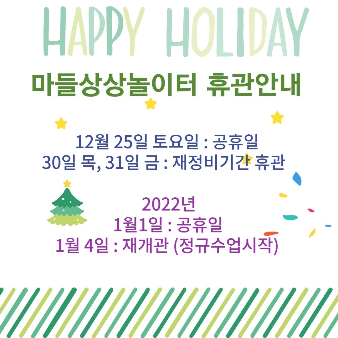 2021년 12월 30일 목요일~12월31일 금요일- 재정비기간 휴관