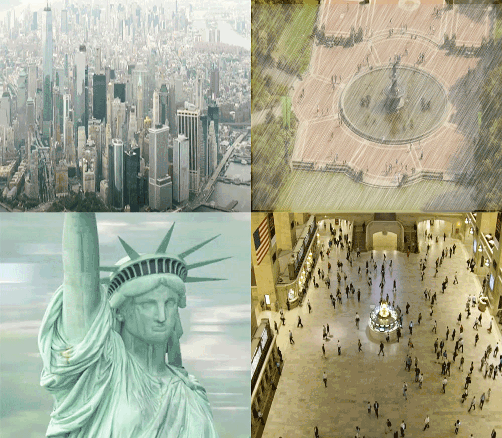 한 화면에 사진 넉장을 가져다 놓고, 그 중의 한 사진에 비오는 연출을 해 보는 것인데