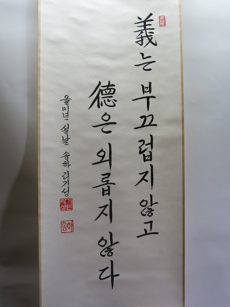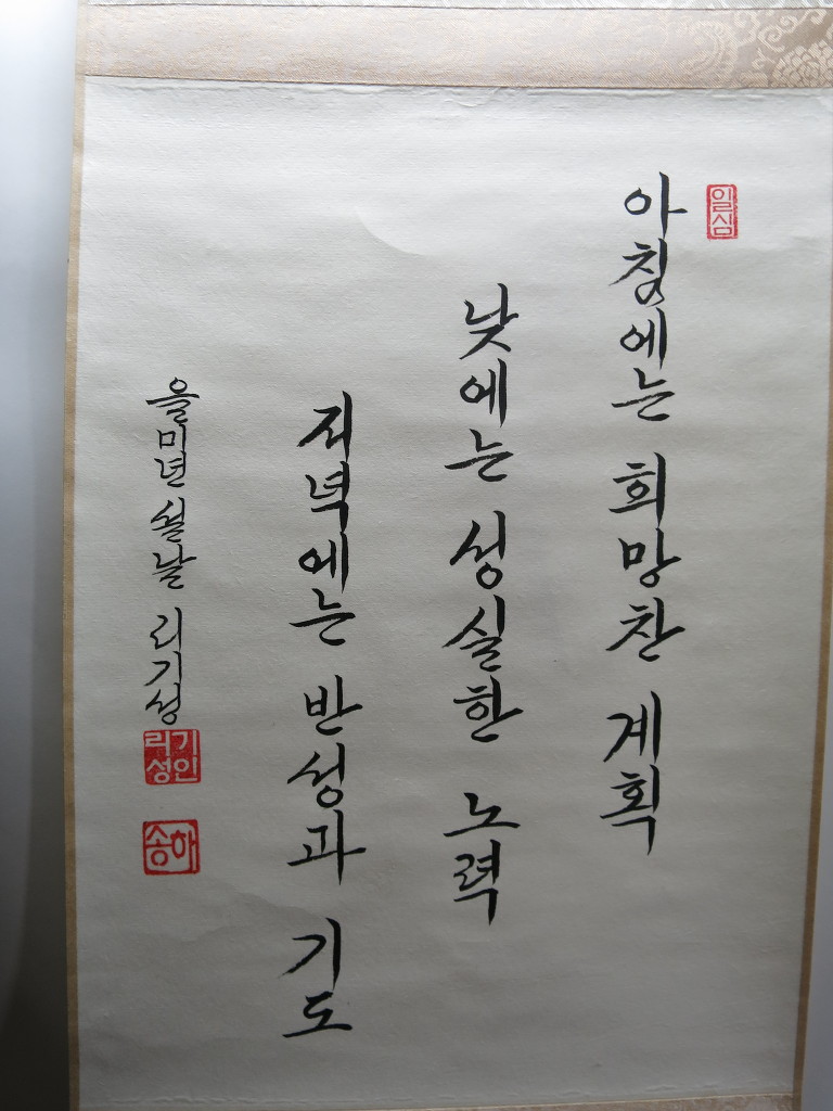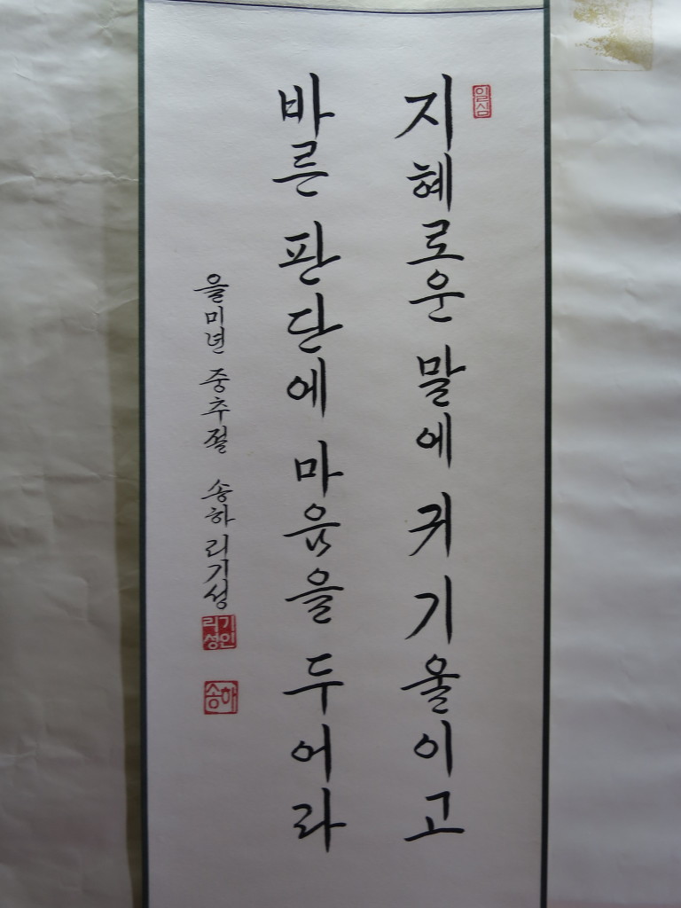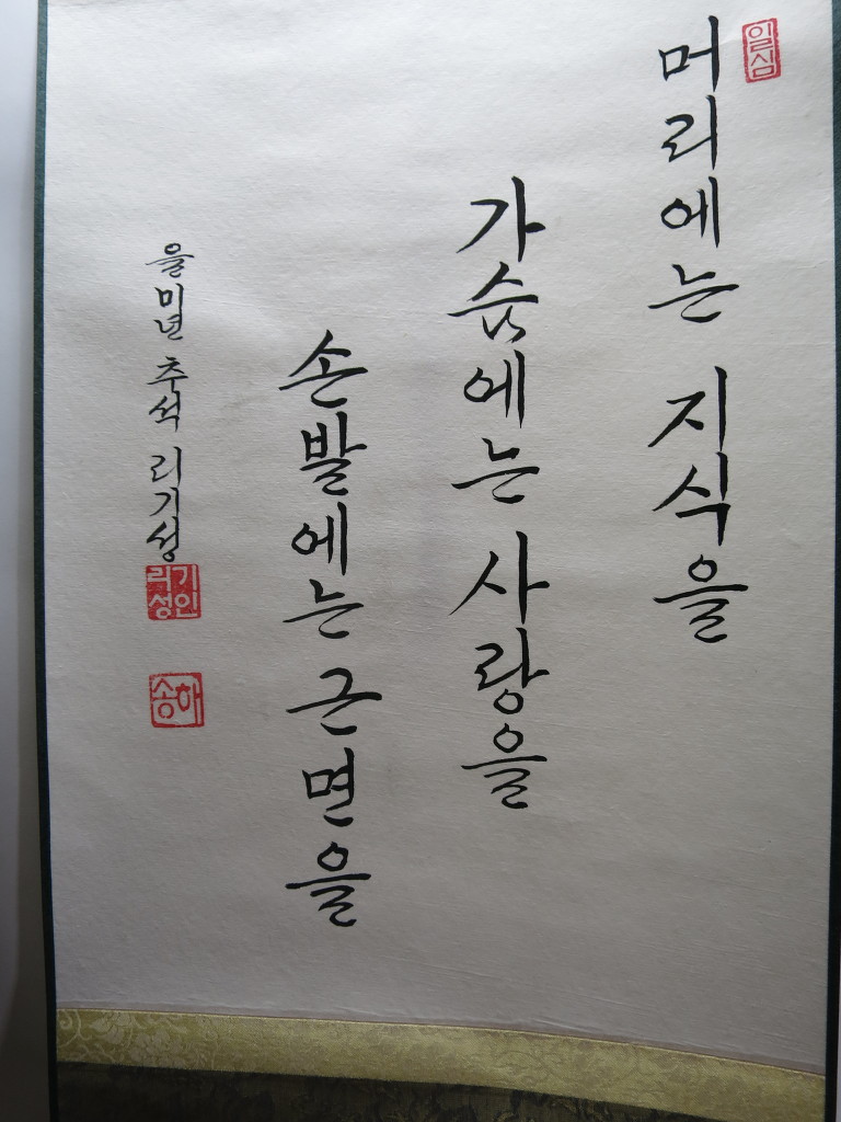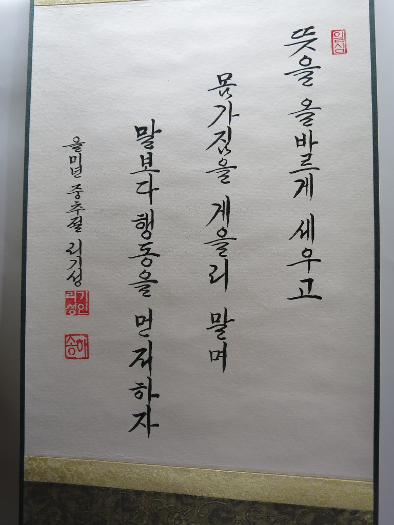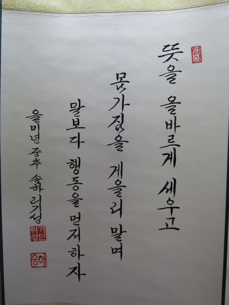 一心誠敬恒尊人 (일심성경항존인) 한결갈이 진실된 공경 심으로 늘 남을 존경하라