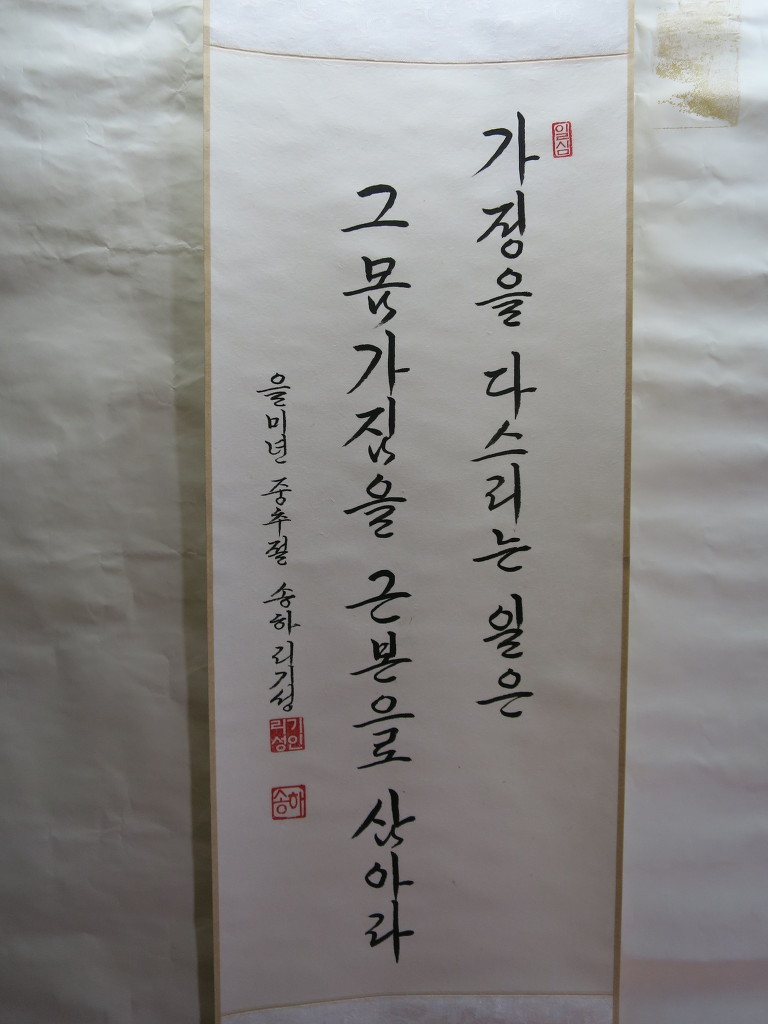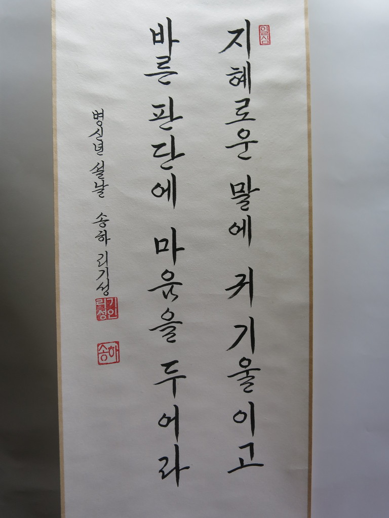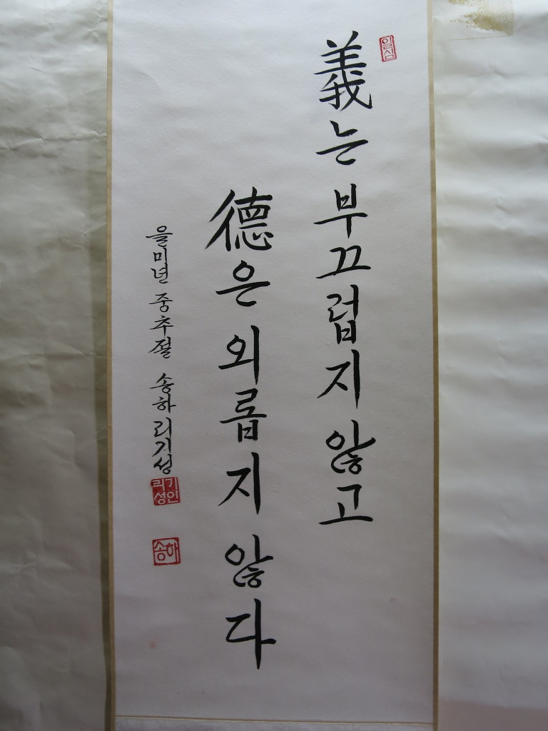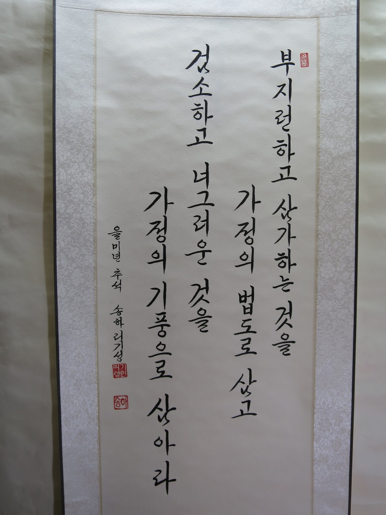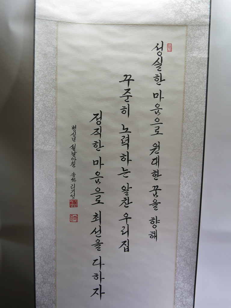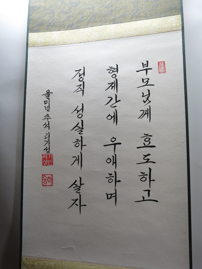 一心誠敬恒尊人 (일심성경항존인) 한결갈이 진실된 공경 심으로 늘 남을 존경하라
