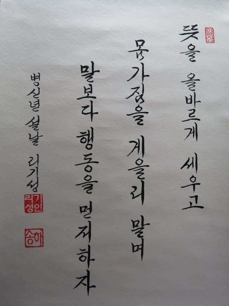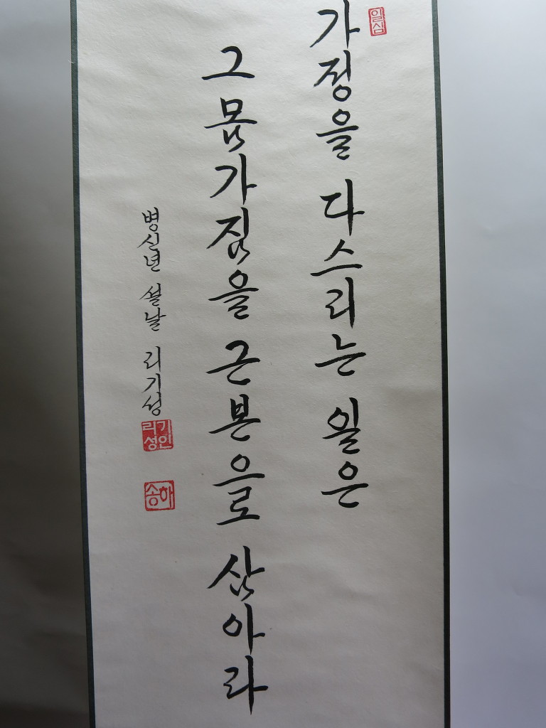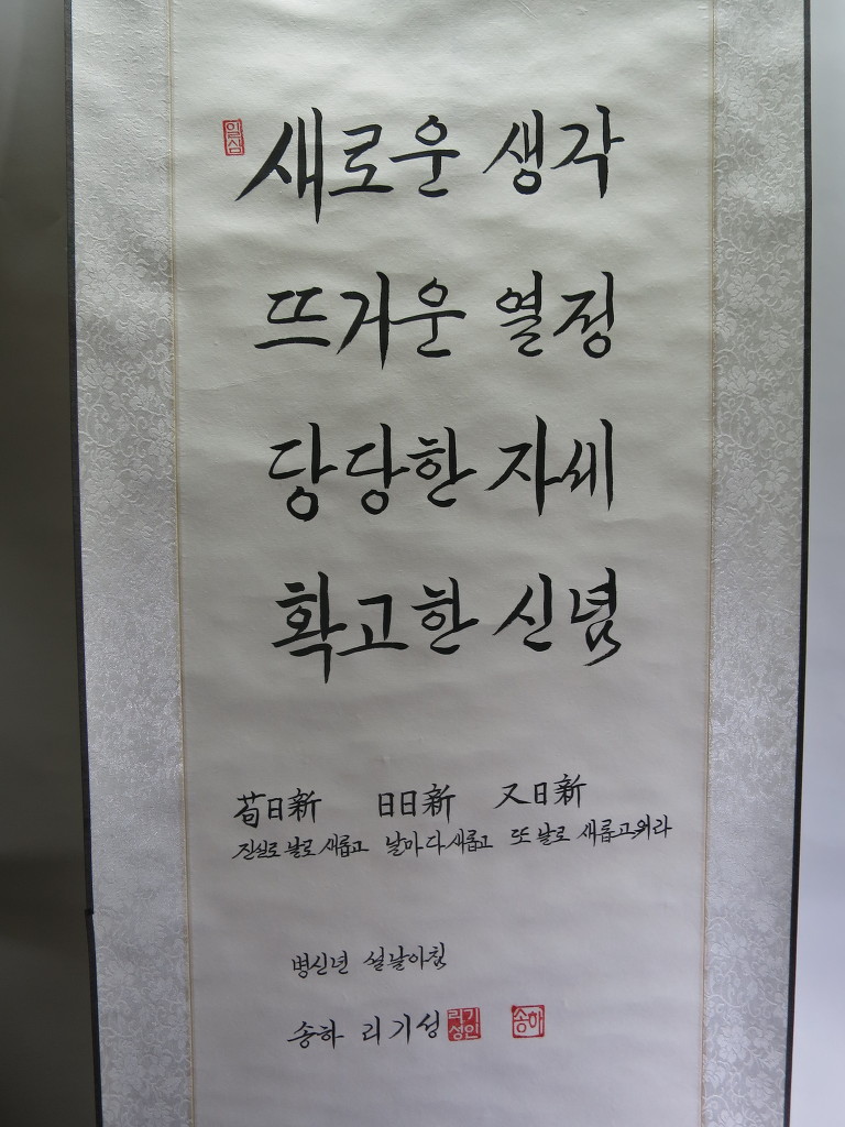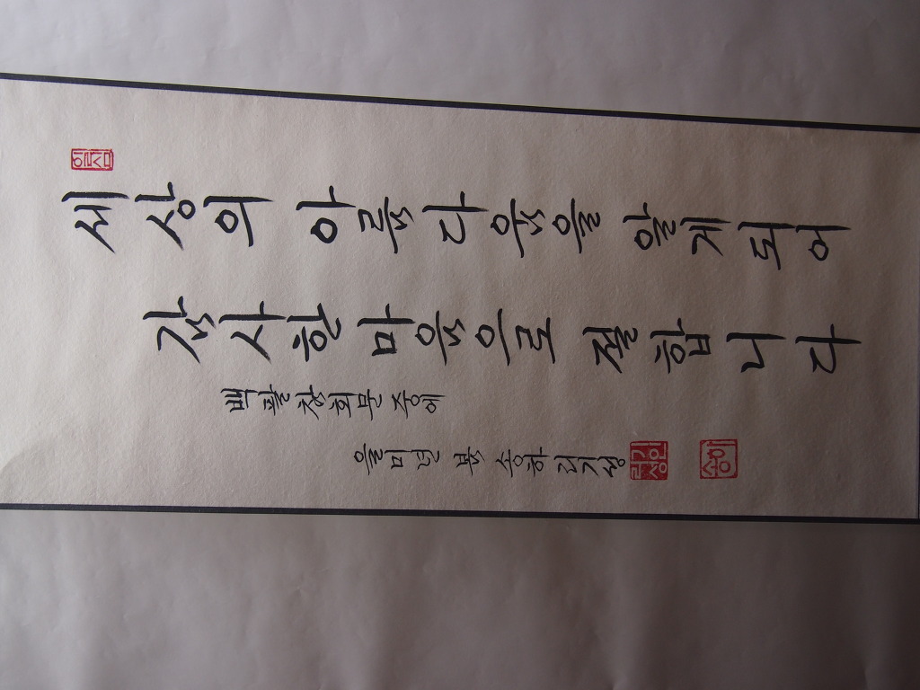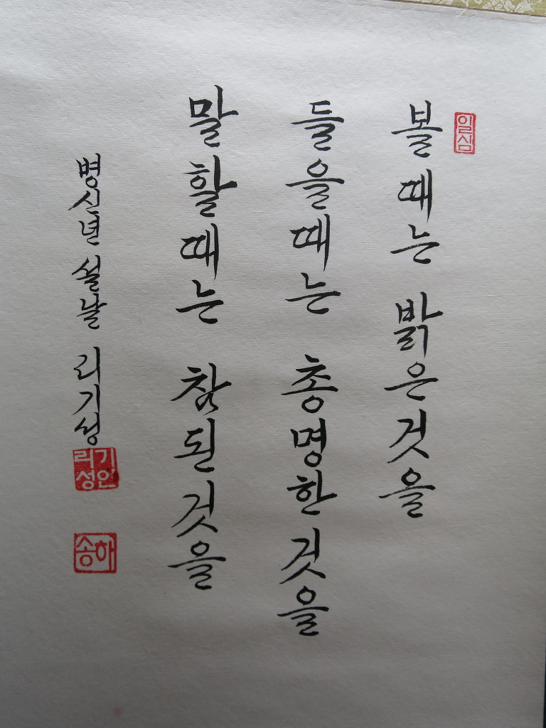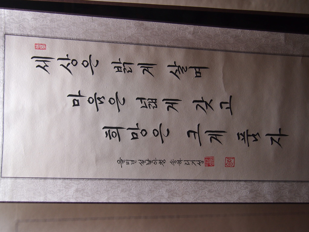 一心誠敬恒尊人 (일심성경항존인) 한결갈이 진실된 공경 심으로 늘 남을 존경하라