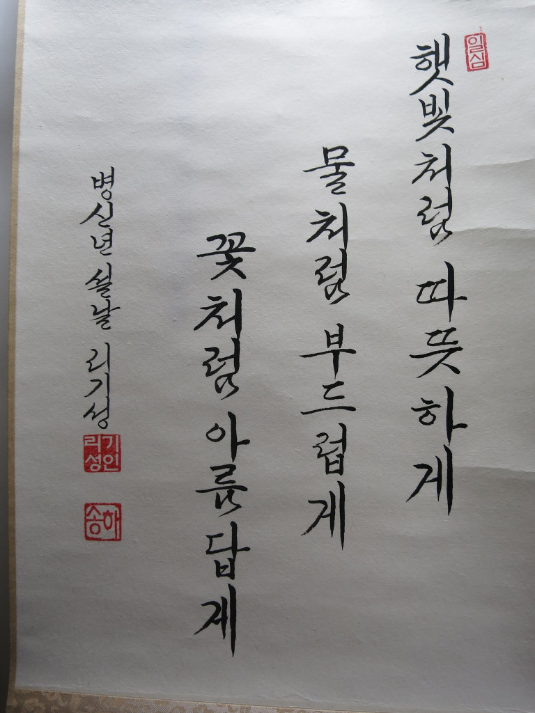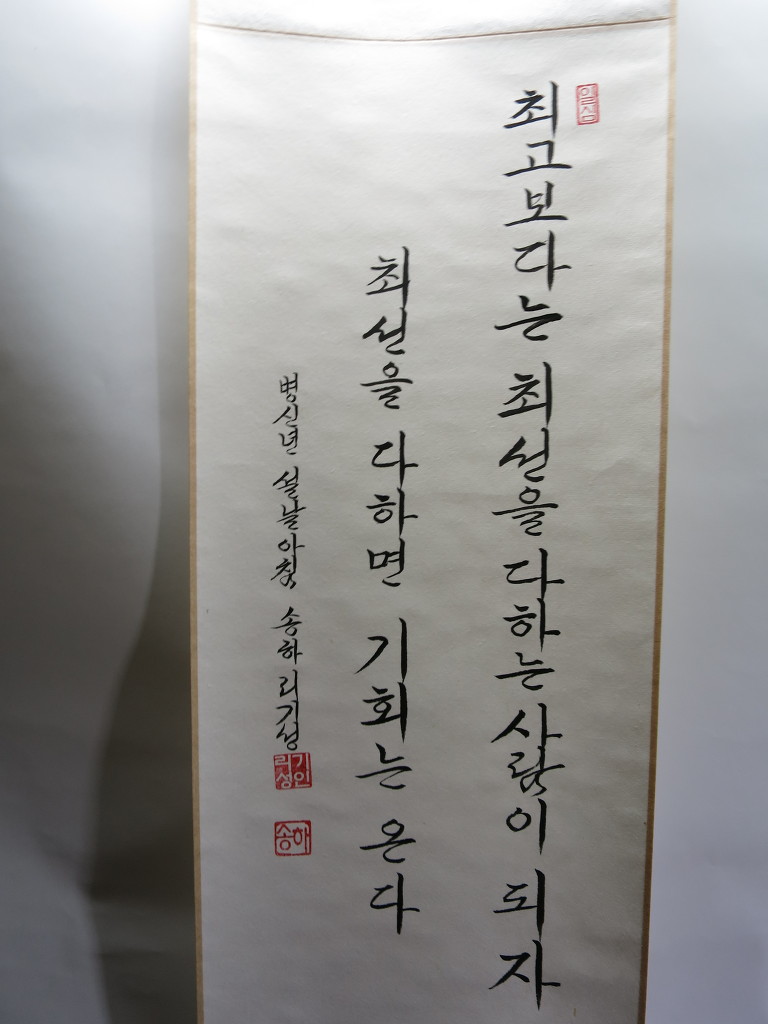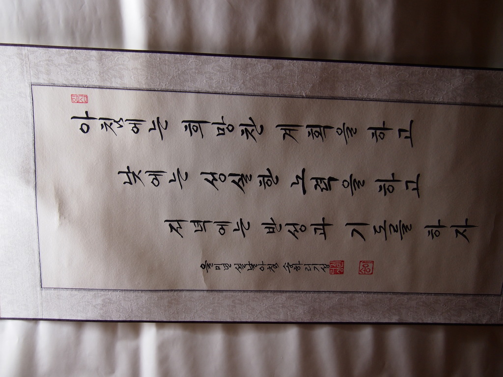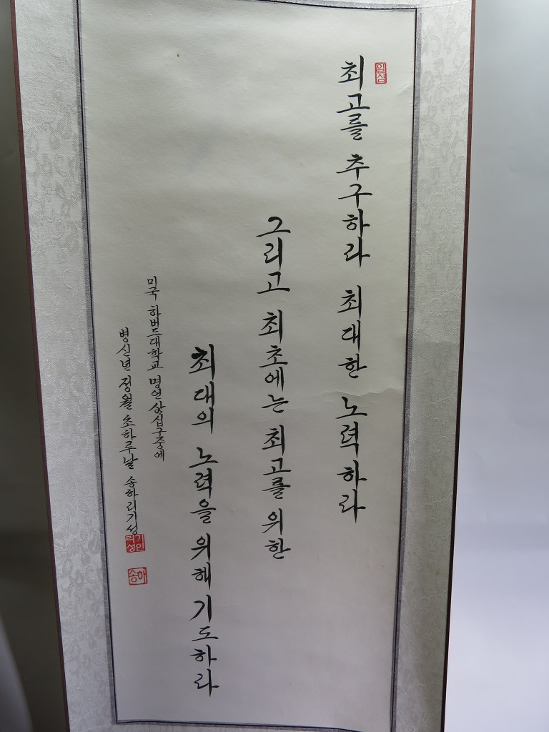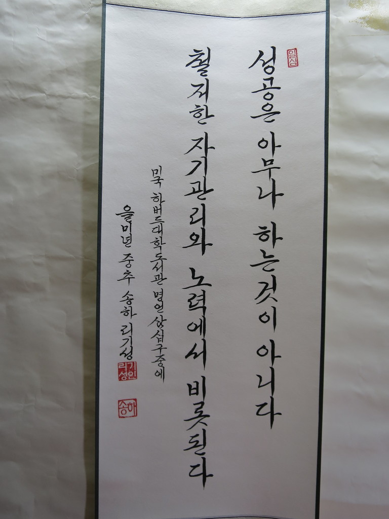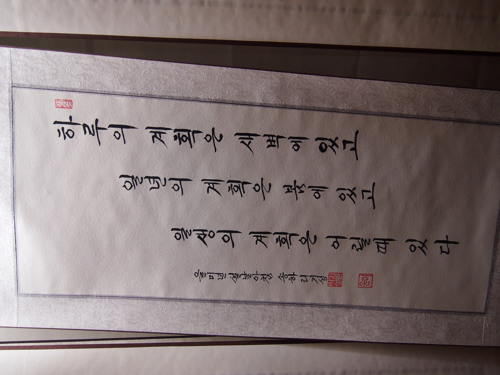 一心誠敬恒尊人 (일심성경항존인) 한결갈이 진실된 공경 심으로 늘 남을 존경하라