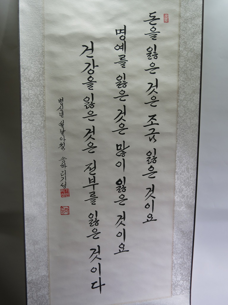 一生重寶身無病 (일생중보신무병) 일생에 귀중한 보배는 몸에병이 없는것이요