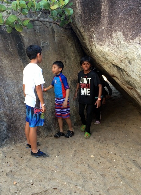 큰바위 사이로 난 길을 Cave이라 부르고 낮고 좁아서 토끼 걸음으로 10메타 정도를 지난다.