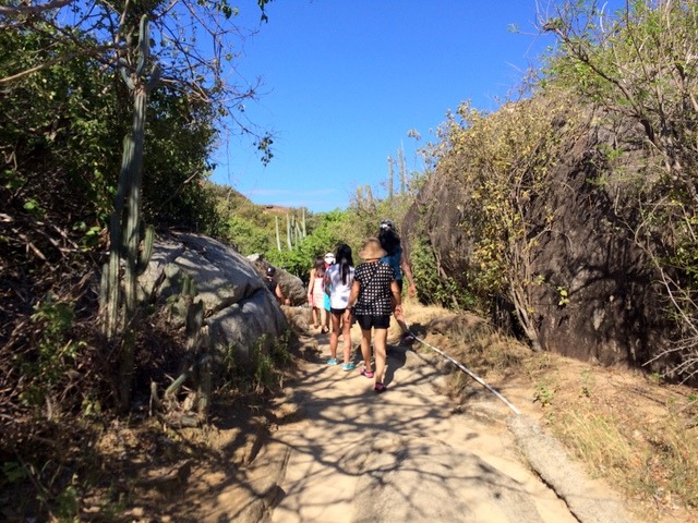 Corda섬에서 오픈 택시를 타고 다시 0.5마일 키 큰 선인장 사이로 고개를 넘는다.