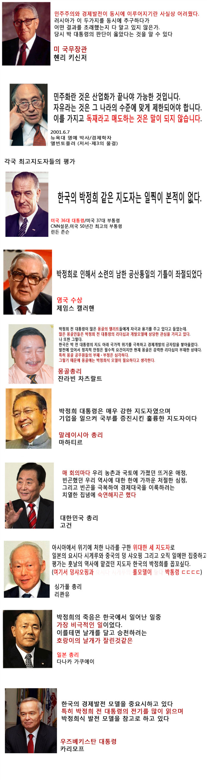 故 朴正熙 大統領에 對한 世界 學子와 指導者의 評