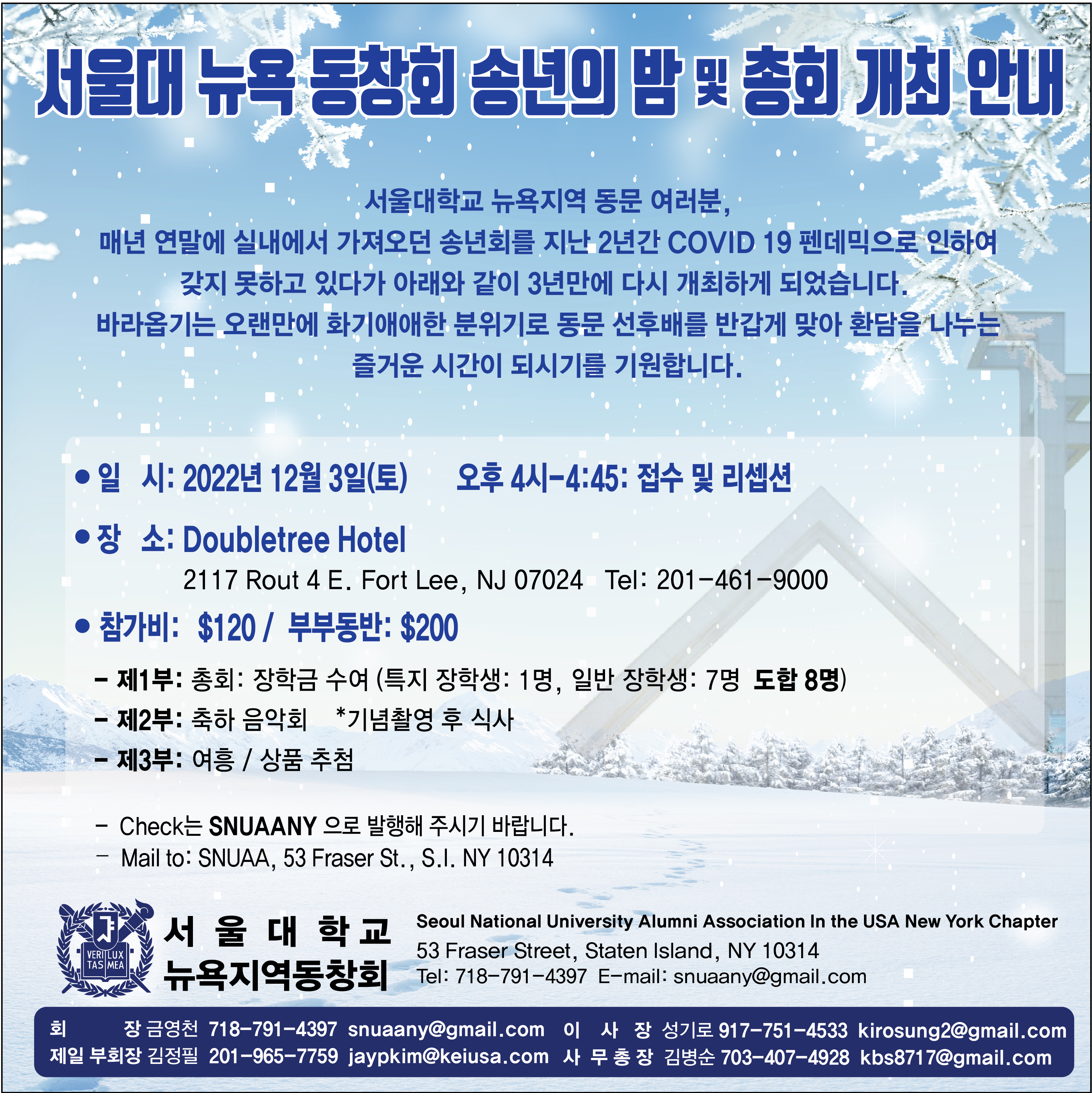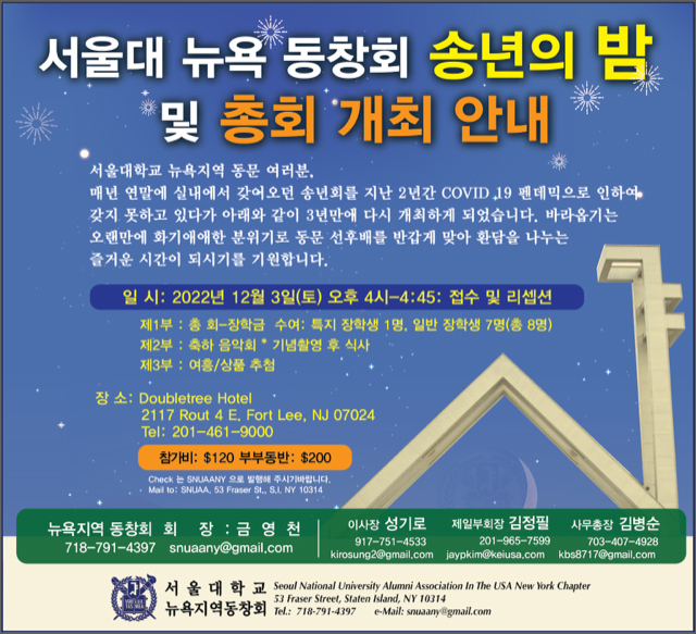 뉴욕 동창화 송년행사- 12월 3일(토)을 기억하세요!! 작성자정해민(뉴저지)|작성시간22.11.18|조회수86 목록 댓글 0 글자크기 작게가 글자크기 크게가 뉴욕일보 중앙일보한국일보 다음검색 현재 게시글 추가 기능 열기 북마크 공유하기 신고 센터로 신고 댓글 댓글 0 댓글쓰기 답글쓰기 댓글 리스트