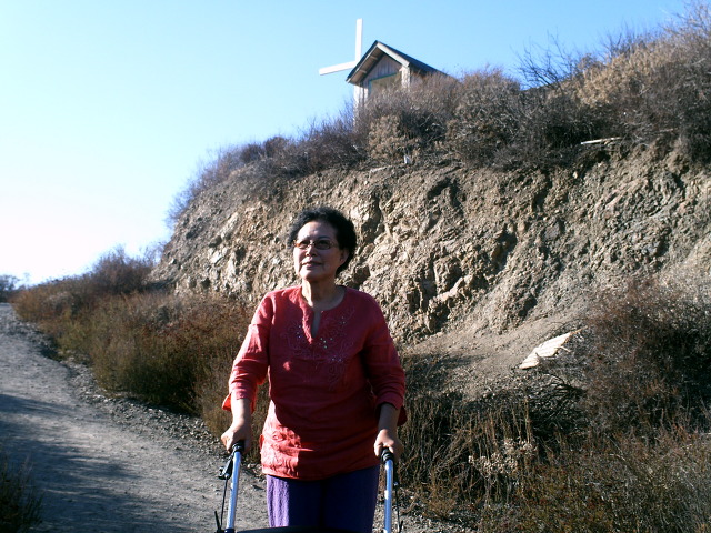 삼년만에 벼르고 벼르던 은혜기도원을 2박 3일로 다녀왔다. 하루 세번 예배가 있고 예배 끝난 다음 자유시간에 기도굴에 들어가서 기도하던지 자연을 바라보며 산꼭대기에서 기도하던지 각자가 정해서 한다. 나는 힘들지만 산꼭대기 십자가 앞 기도처소에 가기로 작정하고 워커를 끌고 올라가는 나를 뒤에서 밀어달라고 친구에게 부탁을 했더니 기꺼이 승락을 해서 무사히 산 제일 높은 곳에 오를 수 있었다. 성도들이 잘 오르지 못하는 높은 산을 무릎도 아직 완쾌되지 않았는데도 해 내었다는 승리감에 얼마나 기뻤는지 '할렐루야'를 몇번히고 외치며 찬송가를 한 없이 목청을 돋우어 부르고 또 불렀다.