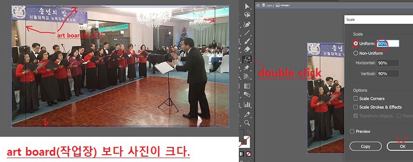 사진 가운데를 click해서 선택한후 "scale" 을 double click 한다.
