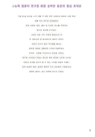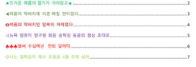 워드에 위의 카페에 올린 일부의 글을 페이지 마다 카피해 올리고 제목을 붙여(사실 첫문 장을 크게하고, 색을 넣어 제목으로 함.) 목차를 연습하기 위함이다. 워드에 글을 써서 INSERT를 눌러 NUMBER를 클릭하여 페이지마다 상단 혹은 하단에 페이지 번호를 쓴다. 글의 맨 위에 제목을 본문보다 크게 써서 눈에 띠게 하는 것이 좋으며 칼라도 선택하거나, INSERT를 눌러 제목옆에 SYMBOL를 눌러 선택하여 올리기도 한다. 위의 크게쓴 제목을 하이라이트 시키고 HOME을 눌러 HEADING을 누르면 제목이 왼쪽으로 정렬된다. 이 제목을 본문과 같은 위치로 위의 메뉴 바에서 가운데 정렬가능하다. 위에서 8면의 페이지를 만들어 1면은 목차, 2~7면은 글을 8면은 연습용 SYMBOL을 올렸다. SYMBOL은 필요에 따라 INSERT를 눌러 SYMBOL로 가서 선택하여 올리면 되고 모양에 따라 칼라도 넣을 수 있다. 또 페이지를 만들다가 쓸데 없는 여유 분의 페이지가 생기면 그 페이지를 지우는(REMOVE) 방법은 지우고저 하는 페이지의 바로 앞의 페이지를 클릭하고 CONTROL+DELETE를 누르면 된다. 위에서 2~7면에 글의 제목을 다 쓴후에 1면의 빈 페이지에 커서를 발생시키고 클릭 INSERT->QUICK PART->FIELD->TOC->FIELD CODE->OPTION->/a->add field->ok를 누르면 1면에 제목이 순서대로 목차로 기록된다. 이제 파일로 가서 save as를 눌러 WORD DOCUMENT로 하거나 PDF로 데스크 톱에 저장하여 글쓰기로 가서 EXEL FILE로 올리거나 포토 샵에 가서 PDF를 OPEN하여 크기를 적당히 줄여 데스크 톱에 JPEG로 저장하여 사진으로 카페 글쓰기에 올리면 된다. 글쓰기에 파일로 올리면 파일 받기를 클릭하여 열어 볼 수가 있고 파일은 이메일로 보낼 수 있다. 사진으로 올리면 바로 볼 수 있어 편하다. 다음은 엑셀 파일을 작성시에 한 셀에 글을 써서 그 넓이가 너무 넓어진 것을 글을 작게 두줄로 쓰면 넓이가 줄어들어 보기가 좋다. 두 줄로 쓰는 방법은 그 글의 중간에 커서를 발생시켜서 ALT+ENTER를 누르면 글이 두 줄로 써지고 셀의 넓이를 줄일 수 있고 글을 하이라이트 시켜서 글의 크기도 줄인다. 엑셀에서 한 칼럼(세로로 예를 들면 A칼럼)옆에 새로운 칼럼을 넣으려면 그 칼럼을 하이라이트시키고 마우스의 오른쪽 클릭하여 INSERT를 눌러 ENTIRE 칼럼을 누르면 새 칼럼이 왼쪽에 생긴다. 또한 가로 줄을 새로 넣으려면 넣고져 하는 열 밑의 가로 열을 하이라이트 시키고 마우스 오른쪽 클릭하여 INSERT를 누르고 ENTIRE ROW(전체 열)를 클릭하연 하이라이트한 열 위에 새로운 열이 생겨 새로운 명단, 물품 등을 추가 가능하다. 그리고, FILTER를 눌러 리스트의 맨 위의 부분이 BLUE로 되고, 각 칼럼마다 세모가 나타나면 그것을 눌러 품목, 명단 등을 빼거나 추가 가능하다. 체크를 마크하면 명단, 품명 등이 추가되고 체크를 떼어내면 제거된다. |