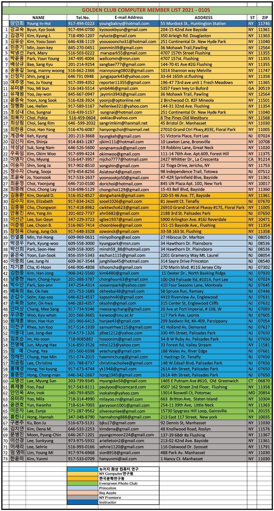 [박명선 자료실]엑셀에서 색깔 별로 sort 하기-Golden Club 컴퓨터연구원 회원 주소록 작성자박명선뉴욕)|작성시간21.01.11|조회수183 목록 댓글 0 글자크기 작게가 글자크기 크게가 Golden club Computer Member List_ 2021 (4).pdf220.52KBGolden club Computer Member List_ 2021 (4).xlsx20.88KB 다음검색 현재 게시글 추가 기능 열기 북마크 공유하기 신고 센터로 신고 댓글 댓글 0 댓글쓰기 답글쓰기 댓글 리스트