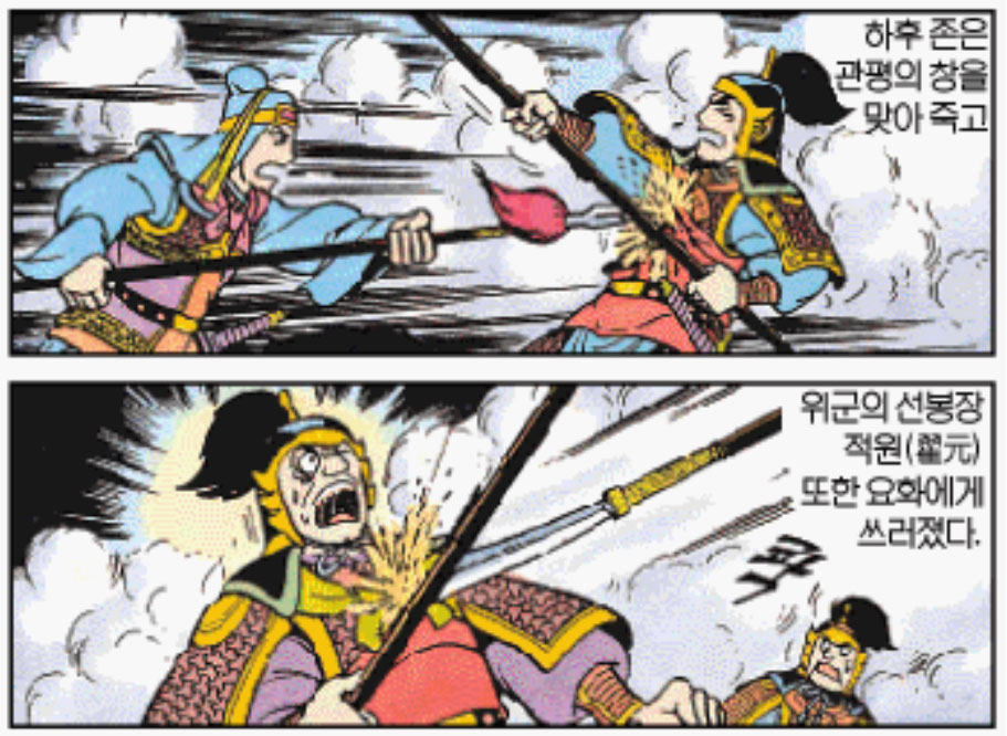 다른 한편에서도 하후존과 싸우던 관평도 십여 합을 싸우다가 거짓 쫒기기 시작하였다.