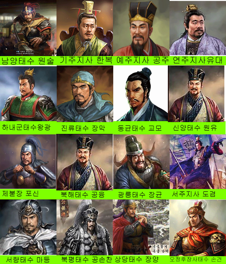 이에 군사를 이끌고 모여 온 영웅들은 아래의 규모에 이르게 되었다.