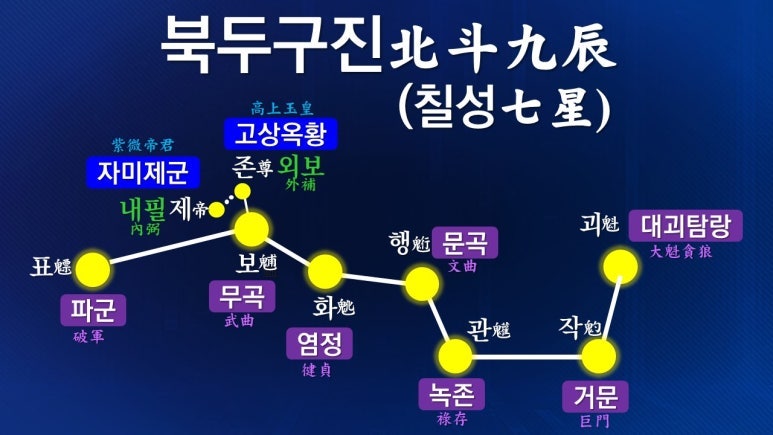 북두칠성은 ‘하늘의 목구멍과 혀(天之喉舌)’에 해당된다고 한 고사처럼, 하늘을 상징하고 나아가 천체 기상을 관장하는 신으로 생각되고 있다.