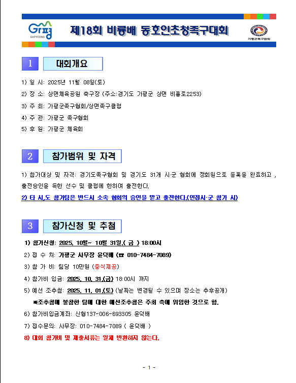 제18회 비룡배 동호인 초청 족구대회 작성자황유석 [사무장]|작성시간25.10.16|조회수143 목록 댓글 0 글자크기 작게가 글자크기 크게가 다음검색 현재 게시글 추가 기능 열기 북마크 공유하기 신고 센터로 신고 댓글 댓글 0 댓글쓰기 답글쓰기 댓글 리스트