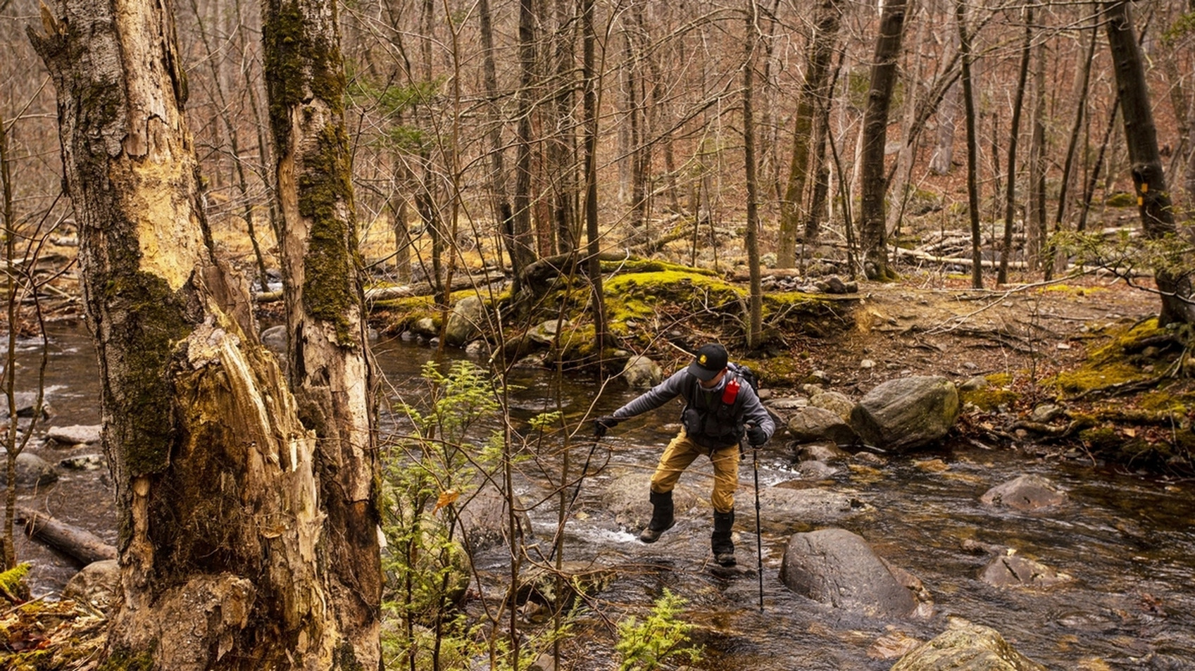 건너편 트레일을 평행으로 따라 오르며 겨우 건널자리를 찾아 길을 건넜다.
