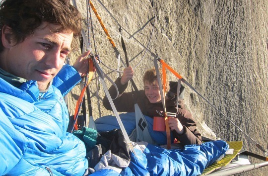 Sonnie and Will Stanhope on their portaledge. [Photo] Sonnie Trotter