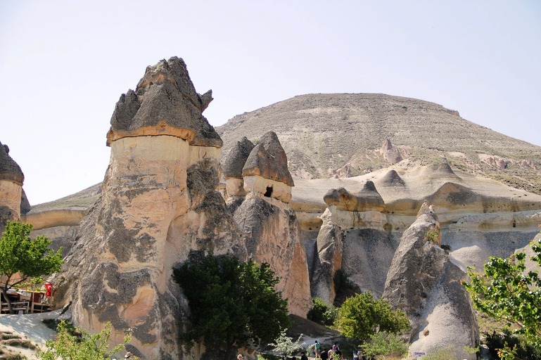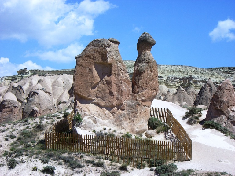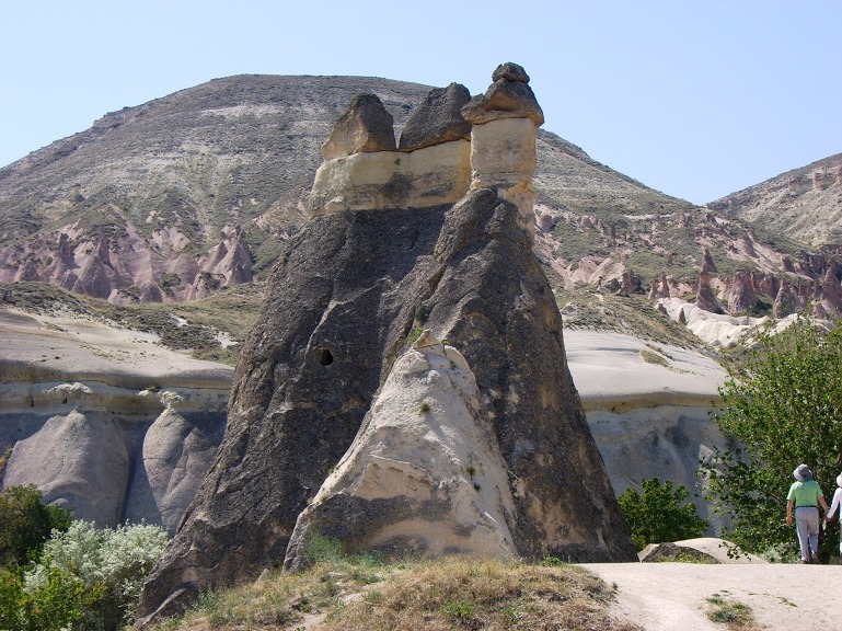 위에서 풍화를 보호하여 오랜세월 깍이다 보니 마치 모자를 쓴 것처럼 버섯처럼 신비스러운 경관을 만들었음.