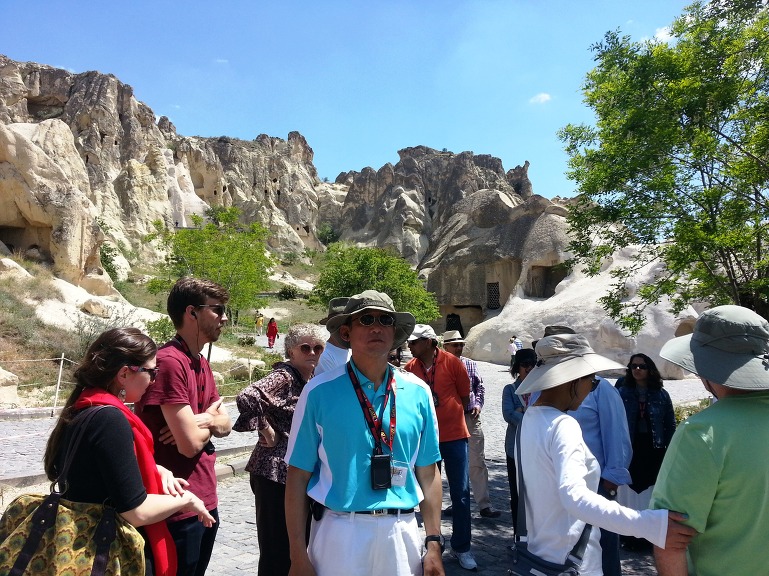 괴레메 석굴 입구 에서 가이드 설명 들으며