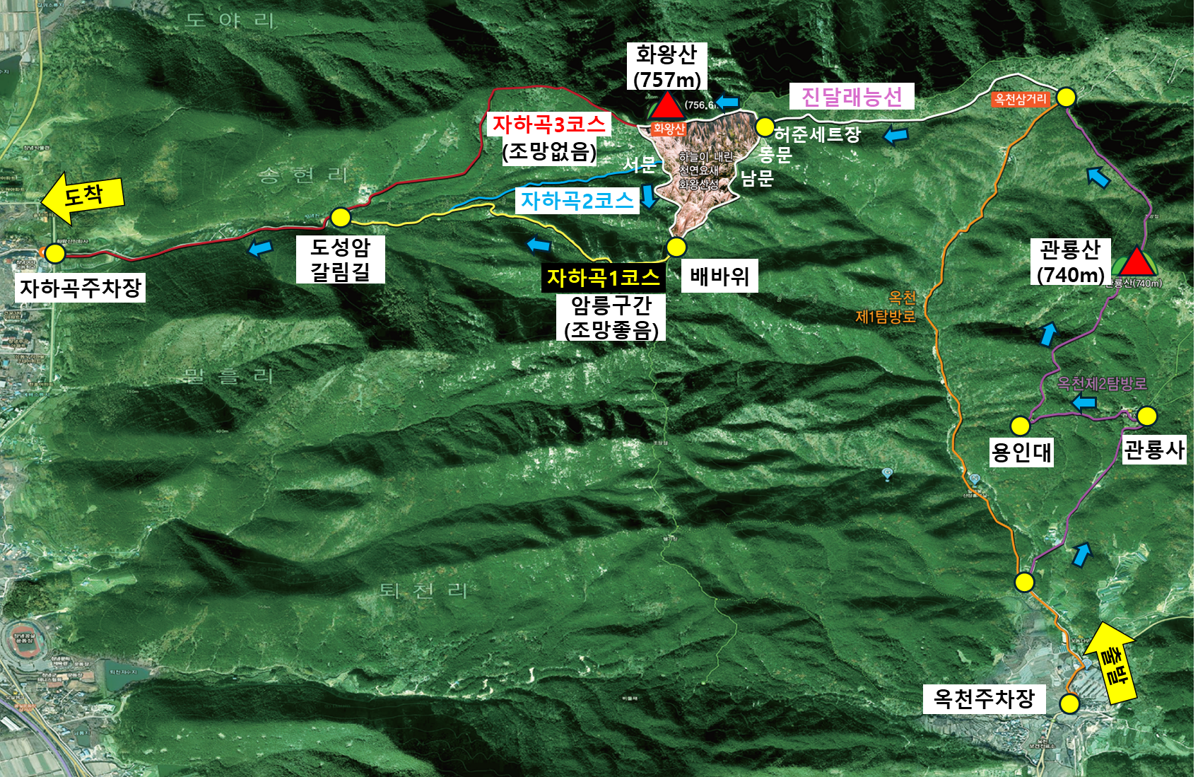 B 코스 (약 8km / 약4시간) : 자하곡주차장 ~ 도성암갈림길 ~ 자하곡1코스 ~ 화왕산 정상 ~ 자하곡3코스 ~ 자하곡주차장