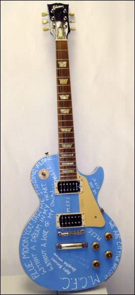 노엘은 기타를 맨시티의 색인 하늘색으로 칠하고