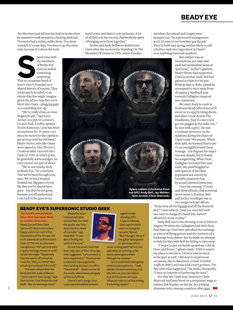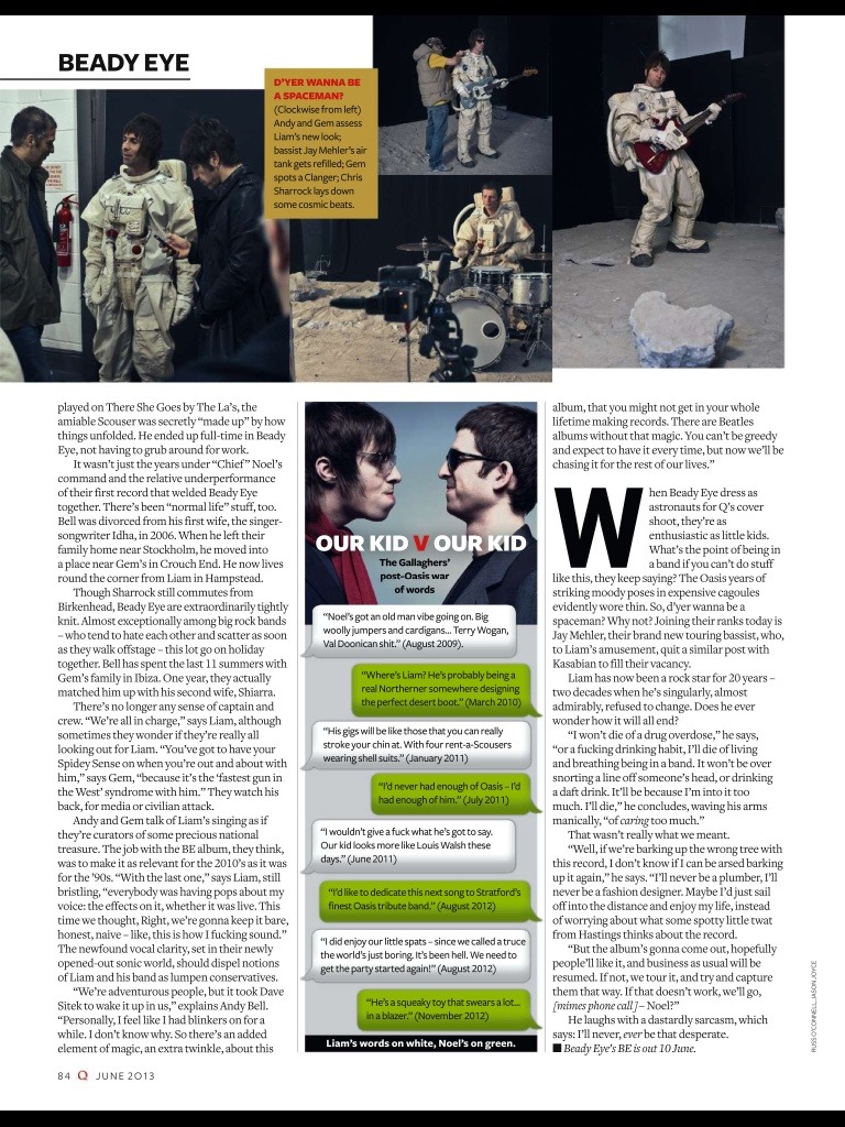 Q 표지 촬영을 위해 우주인 복장을 하면서, 비디아이는 어린 아이들처럼 들떠있다. 그들은 계속해서 "이런 걸 못해본다면 밴드를 하는 게 다 무슨 소용이야?"라고 말한다. 오아시스 시절 비싼 야상을 입고 우울한 포즈를 취하던 것은 분명 이제 질린 듯. 그렇다면, 당신은 우주인이 되고 싶은가? d'yer wanna be a spaceman? 안 될 거 있나? 오늘은 그들의 새 투어 베이시스트인 제이 멜러가 합류했다. 그가 카사비안에서 비슷한 포지션에 있다가 그만두고 비디아이의 공백을 메우러 왔다는 사실에 리암은 즐거워한다.