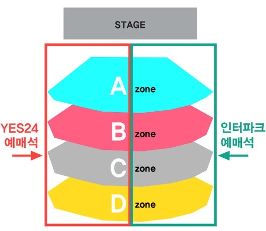 * 중앙 펜스는 없다고 합니다. 즉, YES24 예매 구역과 인터파크 예매 구역 사이의 펜스는 없습니다.