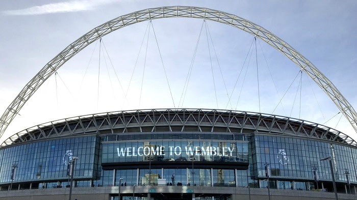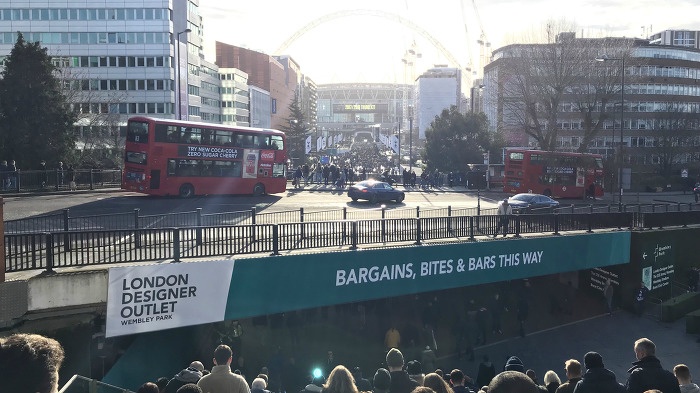 역에서 나오자마자 웸블리 스타디움의 위엄이 느껴지는 순간이었어요. 저 아치 구조물은 웸블리 스타디움의 상징이죠.