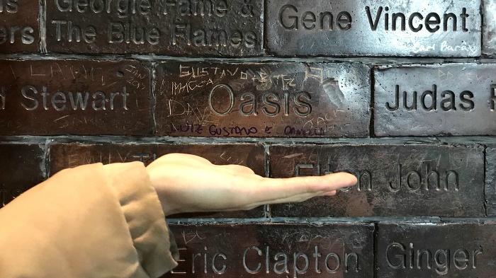 캐번 클럽에서 공연했던 출연자들의 이름이 빼곡히 쓰여 있어요. 오아시스도 멋지게 자리하고 있네요. 유난히 낙서가 많은 벽돌 하나. ㅎㅎ