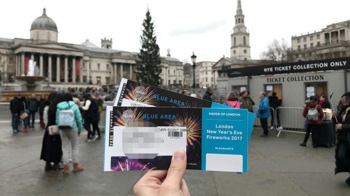 웬 티켓이냐고요? 사실 이 행사는 유료 관람입니다. 해외에서 새해를 보내는 건 이번이 두 번째인데, 그 첫 번째는 2017년 뉴욕 타임스퀘어였어요. 운이 좋게 날짜가 맞아서 타임스퀘어 Ball Drop을 볼 수 있었는데 너무 좋은 경험이 되어서 ' 새해는 무조건 해외에서 보내자! ' 혼자 다짐을 하게 되었어요. 그래도 1월 1일을 기념하는 건데 해외 랜드마크에서 본다면 더욱이나 특별하잖아요? 그렇게 다음으로 찾은 장소가 여기 런던이 되었는데, 여행계획을 짤 때 확인해보니 구역마다 티켓을 따로 사야 한다고 하더라고요. 제일 전망이 좋은 구역은 런던아이 맞은편, Blue Area는 장당 10파운드의 가격이었어요. 원래 무료였던 행사가 자릿값을 내는 게 좀 그렇긴 하지만 뉴욕 타임스퀘어에서 수많은 인파와 경쟁해야 하는 자리싸움을 생각하면 어느 정도 편의성이 있다고는 생각되네요. 타임스퀘어는 공연도 해주는데, 여기는 돈도 받으면서 안 해주는 게 더 마음에 안 들어요. ㅋㅋㅋㅋ 기다리는데 너무 춥고 지겨웠어요. 스탠딩의 어쩔 수 없는 사명이죠.