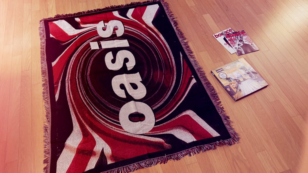오아시스 공홈에서 “오아시스 로고 태피스트리 블랭킷” 구매해봤어요. 충동구매했는데 생각보다 두께도 있고 재질도 짱짱하고 색감도 구매 화면 그대로라(화면보다 약간은 더 칙칙한듯?) 마음에 들어요.