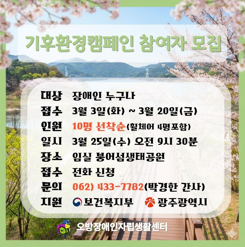 인원 : 10명 선착순(휠체어 4명포함)