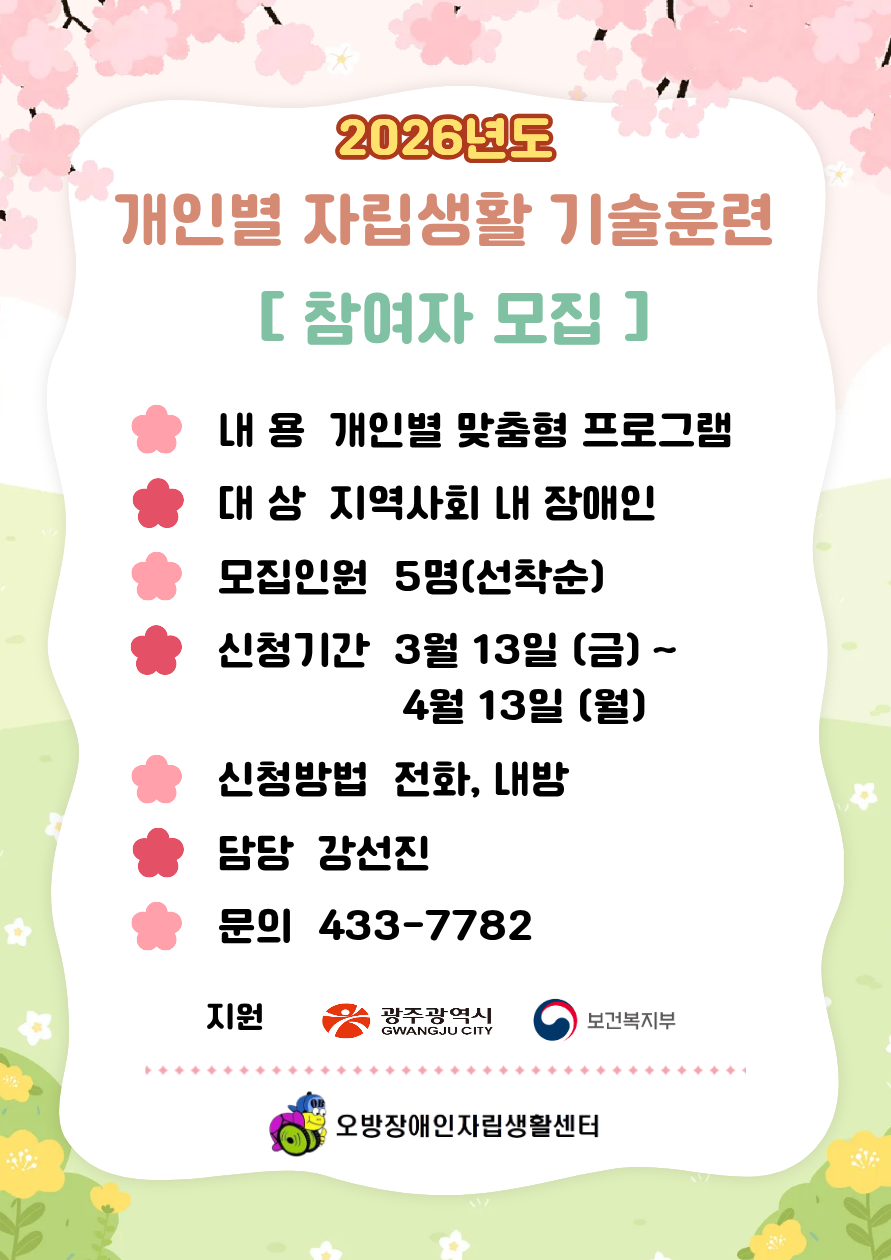 2026년 개인별 자립생활 기술훈련 지원