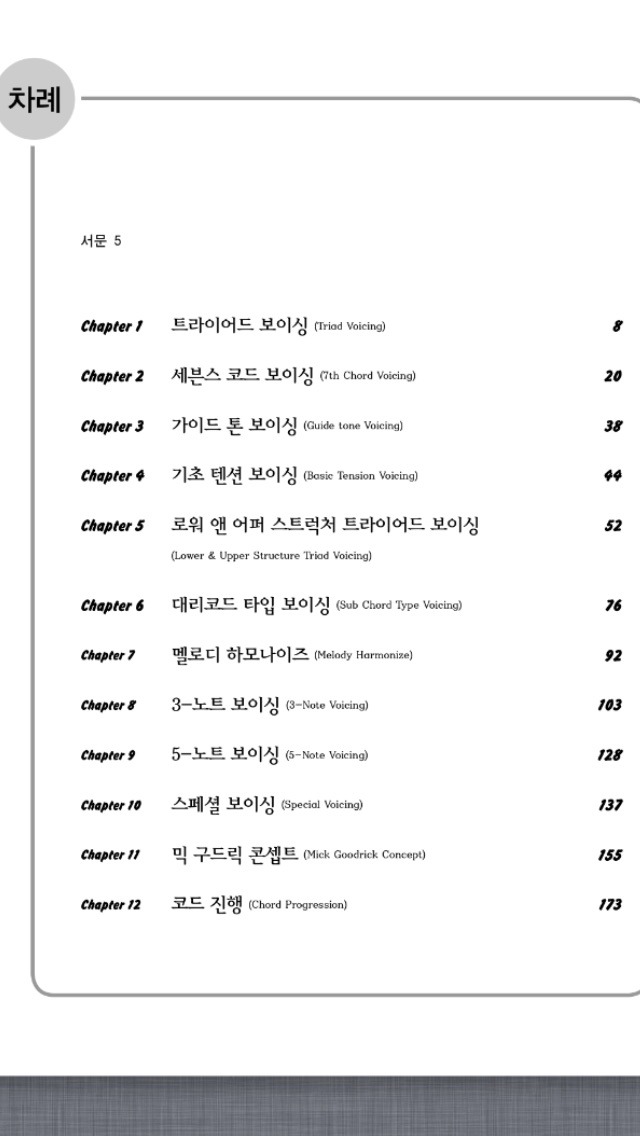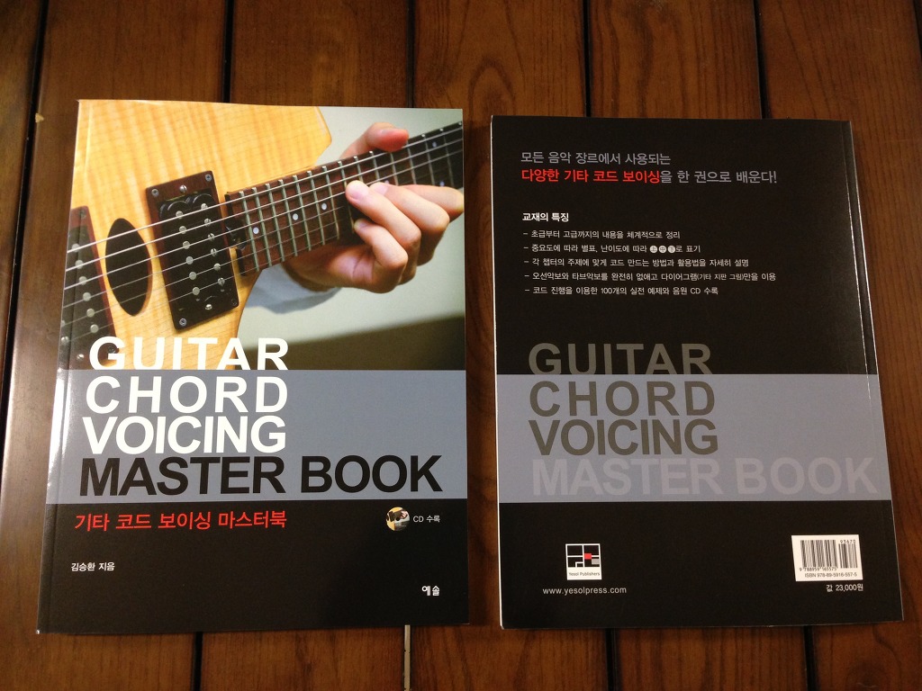 2015년 1월 "기타 코드 보이싱 마스터북"교재가 출간 되었습니다. 초급에서 고급레벨까지 기타 코드 보이싱에 관한 다양한 포지션과 활용법 등을 자세히 소개하고 있습니다. 저자가 직접 연주한 100개 예졔의 CD가 포함되어 있습니다. 기타 코드에 관심있는 분들에게 많은 도움이 되길 바랍니다 감사합니다.^^