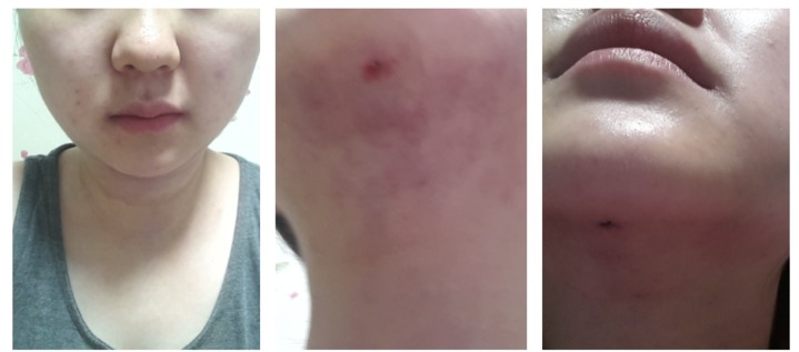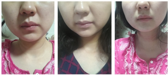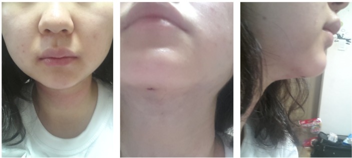 지금은 목에약간 멍이남아있고 양쪽턱이나 가운데턱은