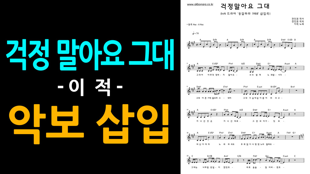 - 원곡 / 가수(연주자) : 걱정 말아요 그대(이적)