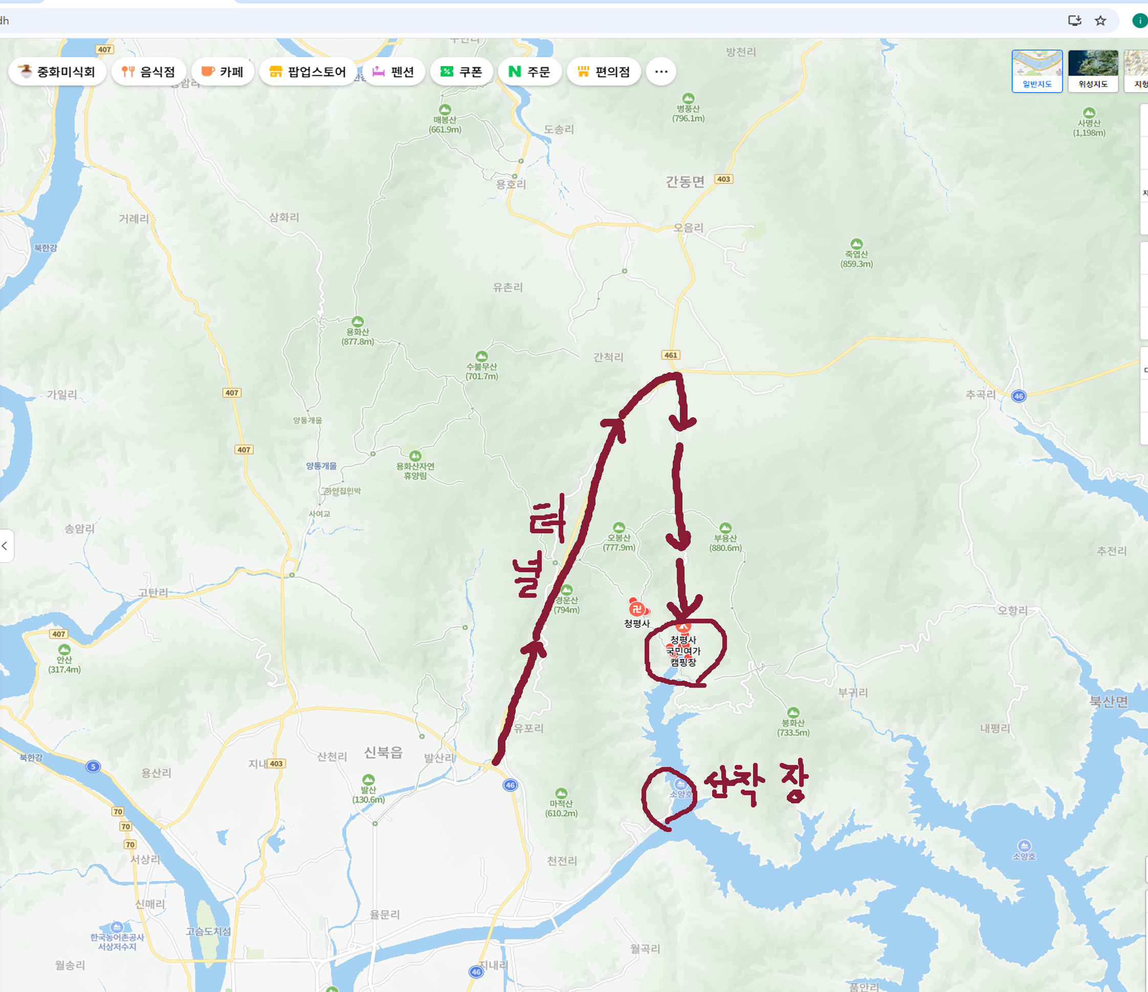 내비에 청평사를 치니 배후령터널로 해서 청평사 아래 선착장으로 길을 인도한다.