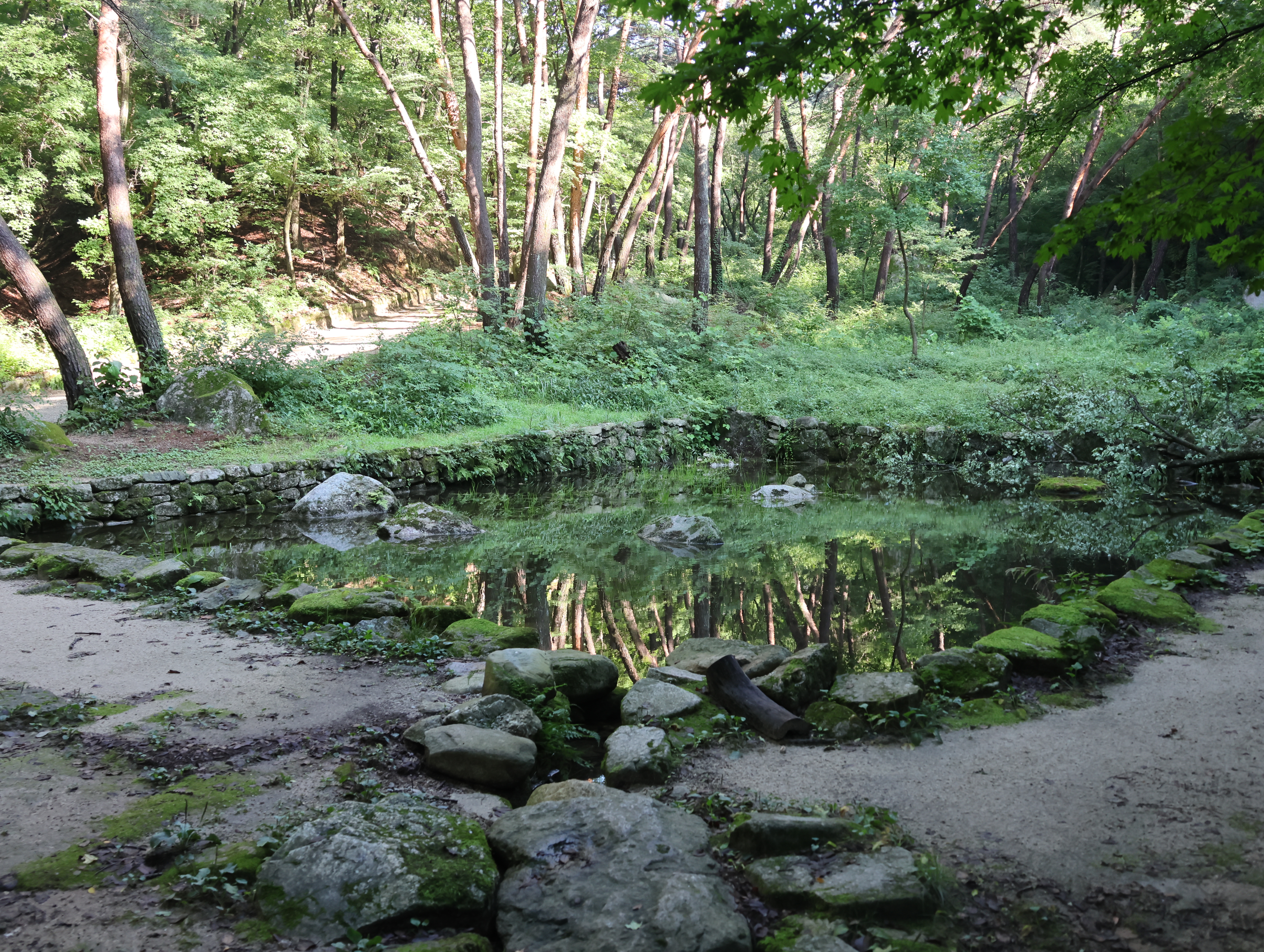 작은 연못인데 물에 비치는 반영이 놀랍다