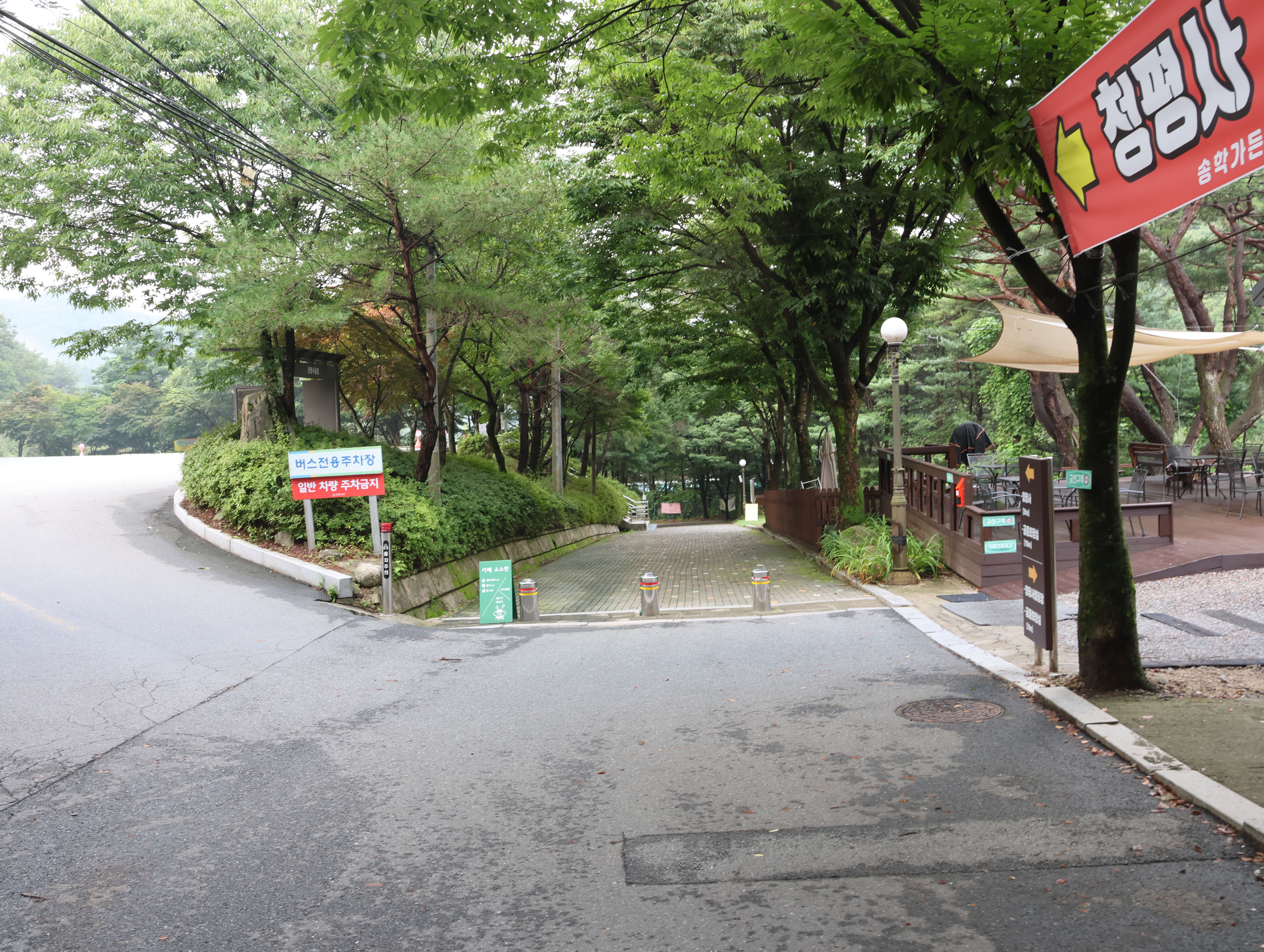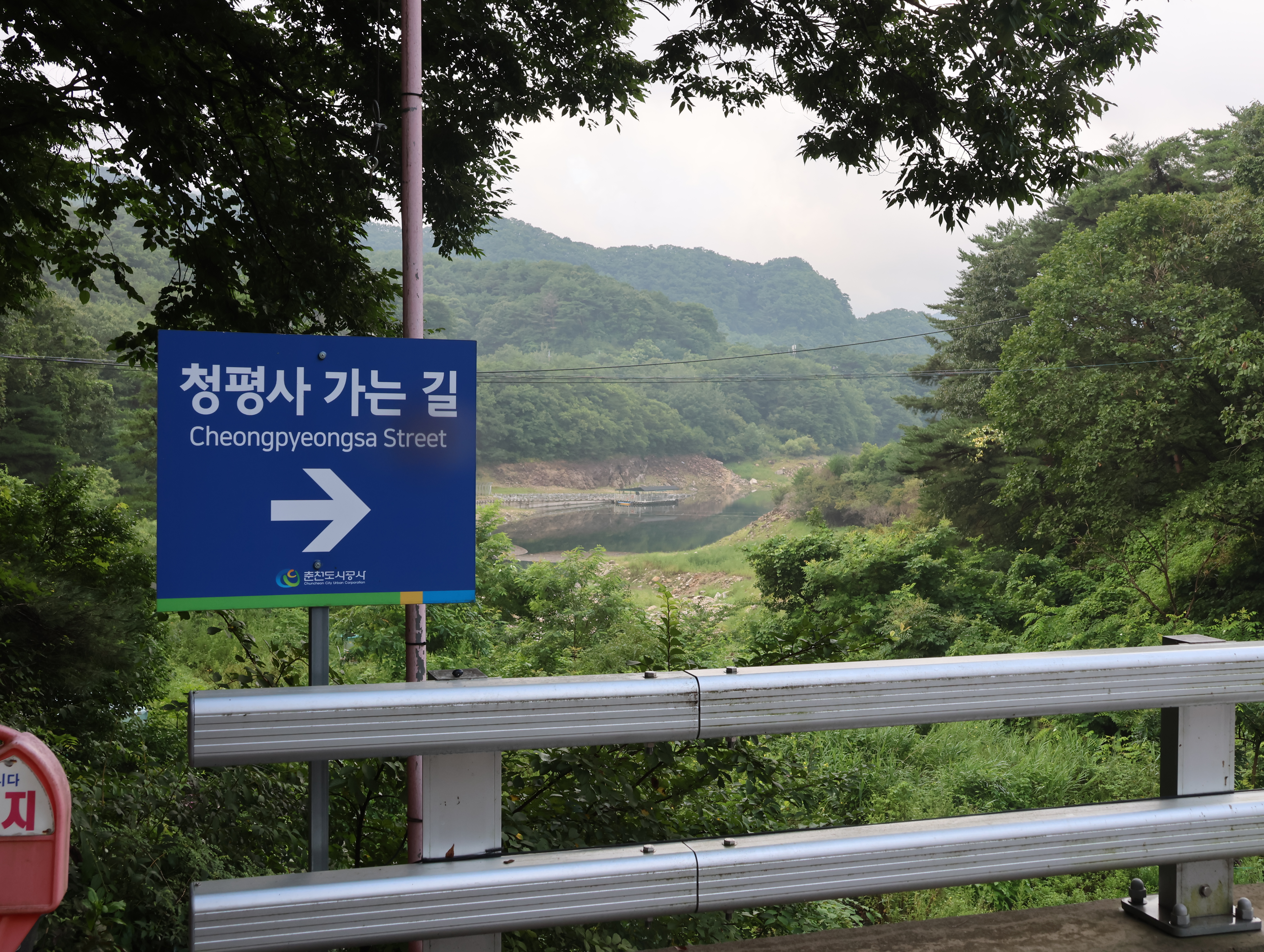 표지판 우축에 보이는 물이 청평사 선착장이 있는 곳이다