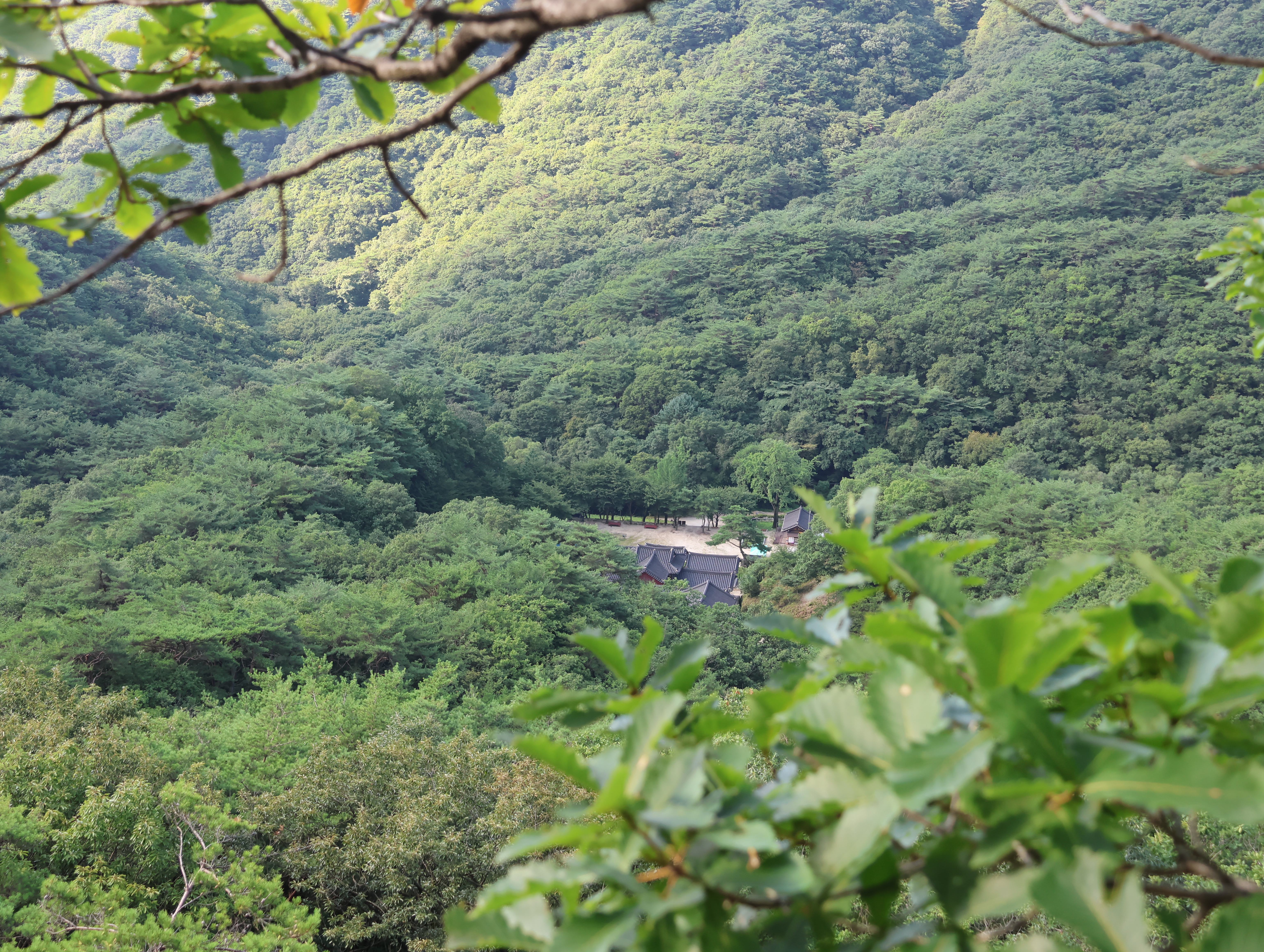 절까지 도로가 잘 닦여있어 차로 갈수 있는데 일반인은 출입금지라 주차장에 세우고 걸어야 한다
