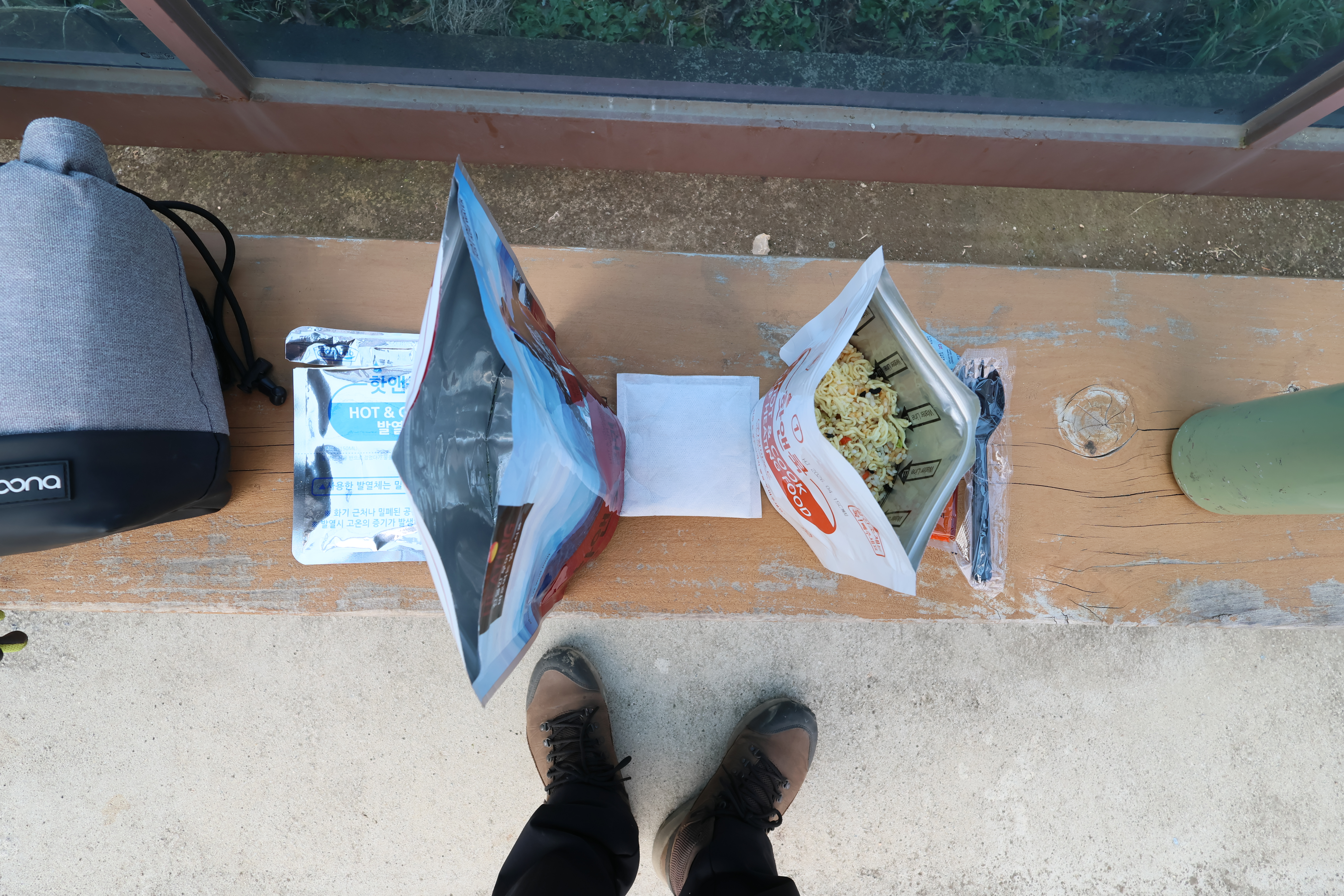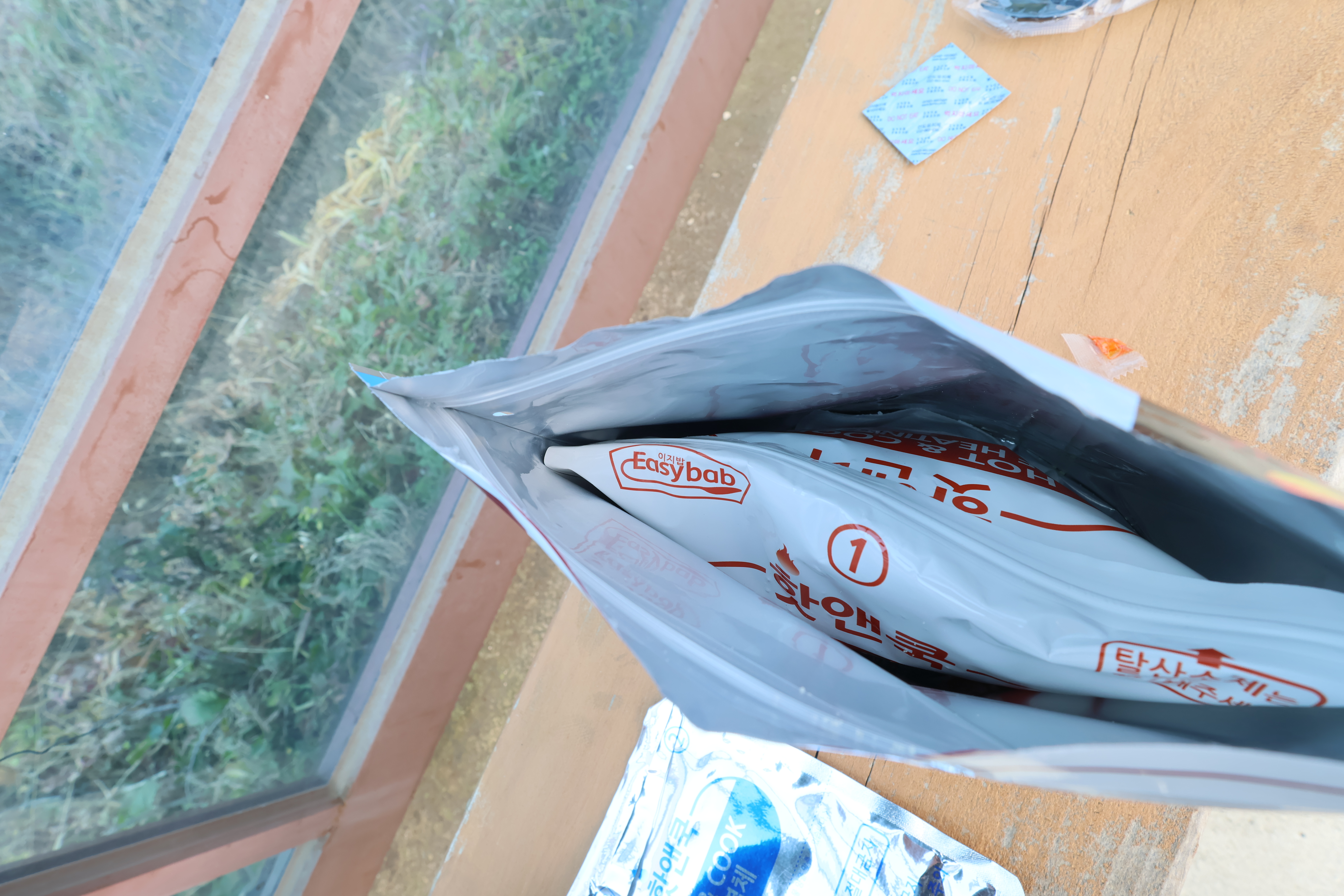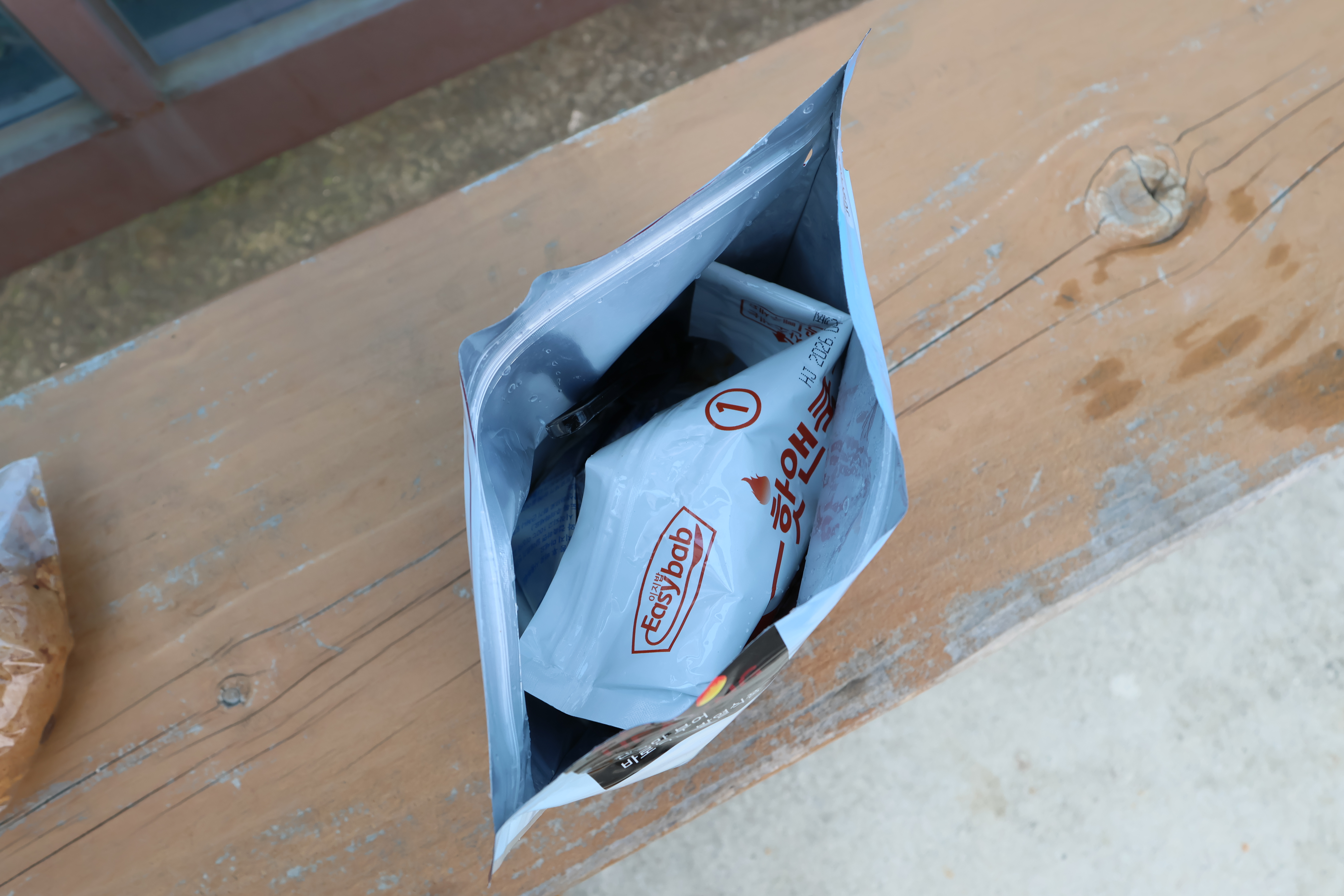 다 먹고 난 후에는 요론식으로 쓰레기 들을 겉봉에 다 밀어 넣고 지퍼백을 닫은후 가방에 넣고 있다
