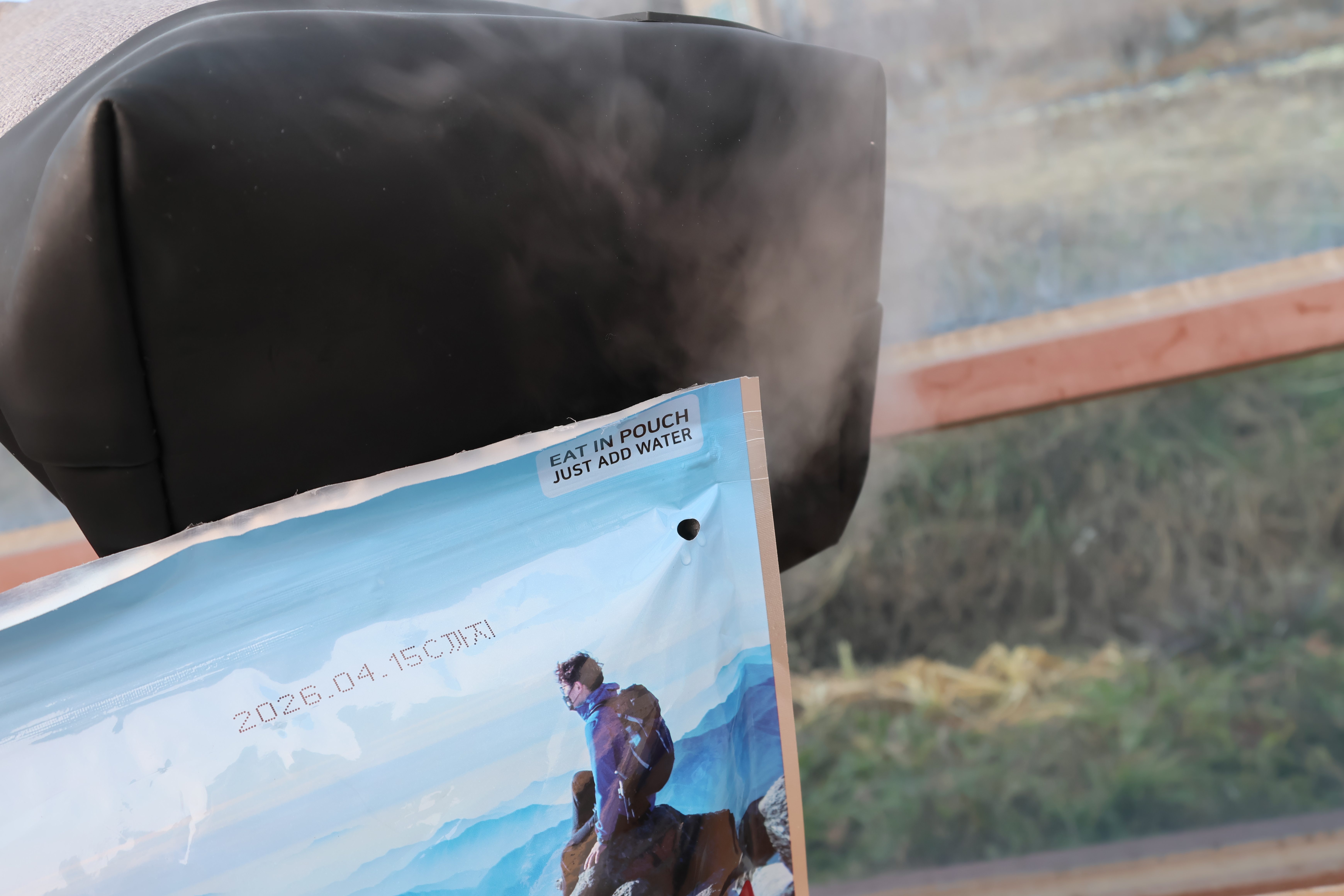 ***물을 부으면 3초후부터 화학반응을 일어켜 부글부글 끓어니 잽싸게 겉봉의 지퍼를 잠가야 한다.