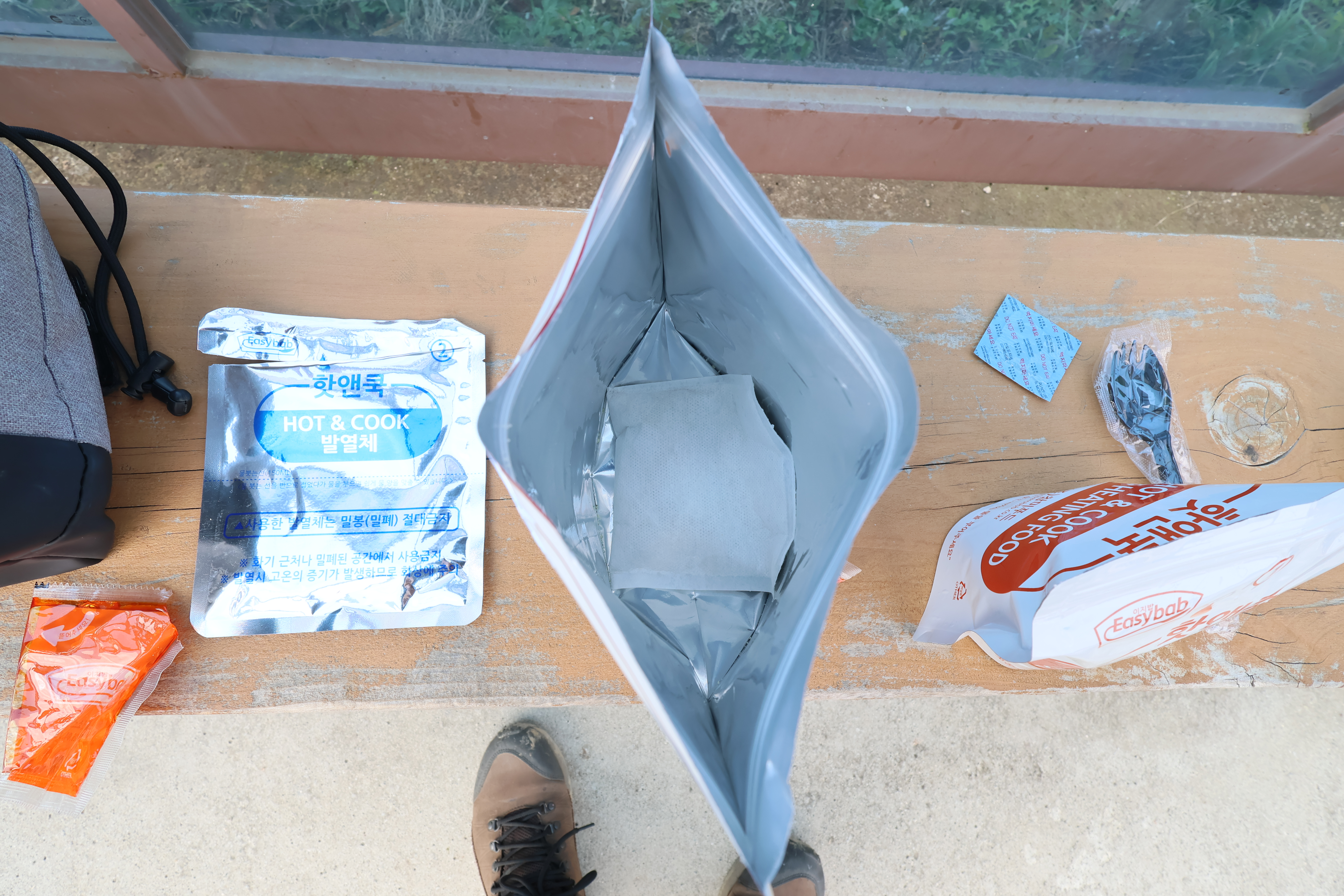 **** 발열재는 식사할때 꺼내놓아 식힌후 봉투에 넣어 버려야 한다(물속에 두어 계속화학반응하는데