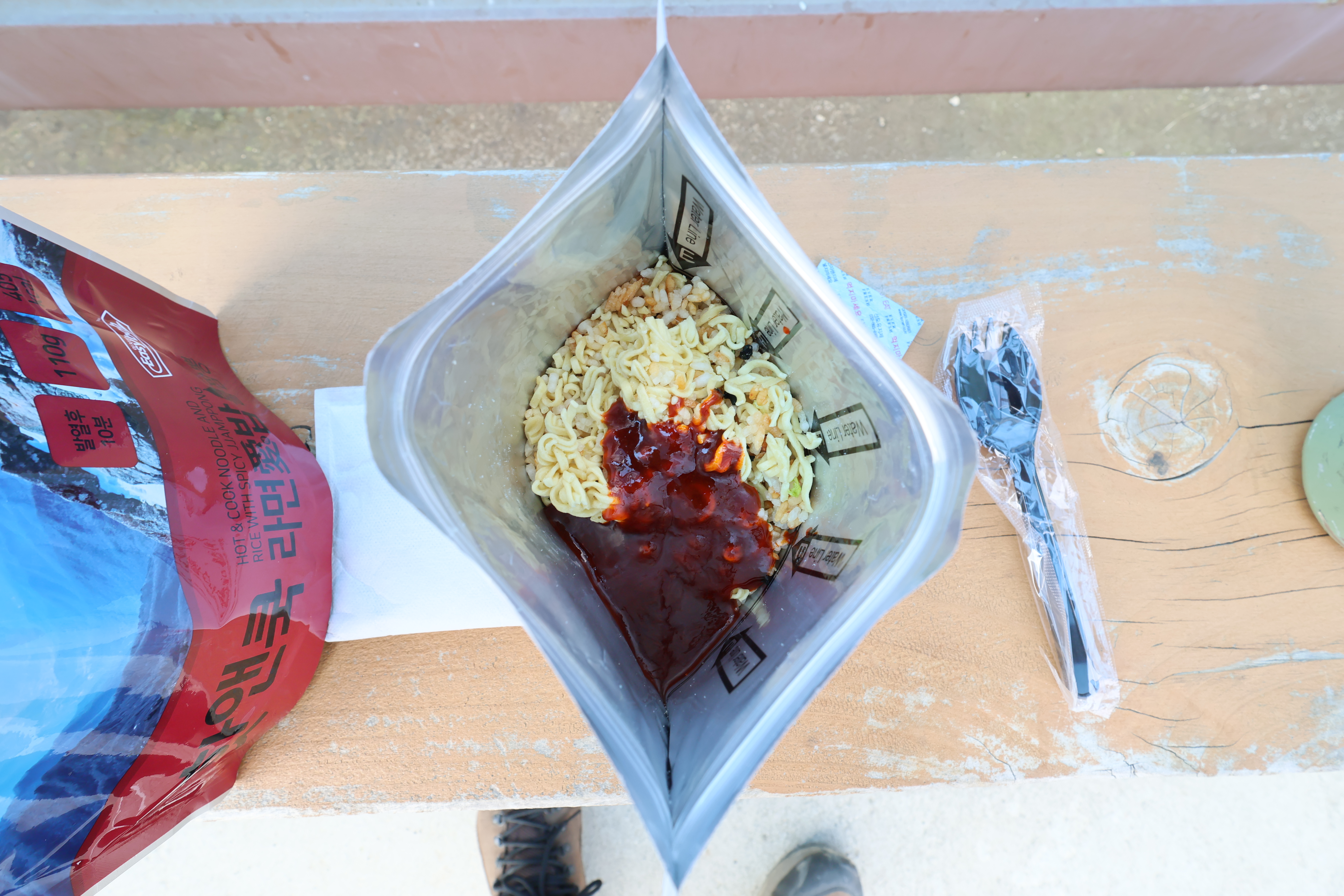 난 약간 뻑뻑한것 같아서 보온병에 뜨거운 물을 약간더 부어 먹었다.