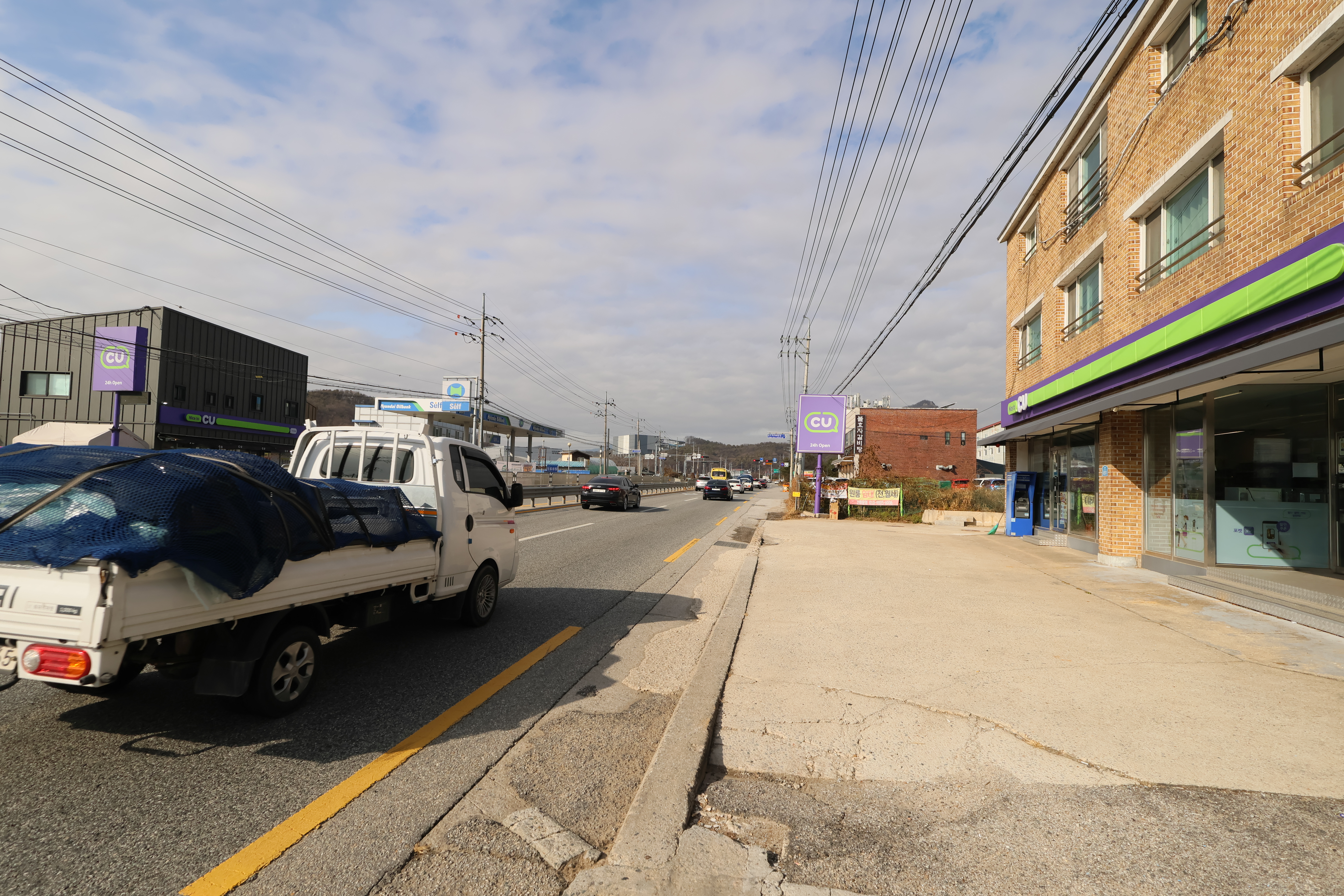 한참 걸으면 건너편에 현대오일 주유소가 있다