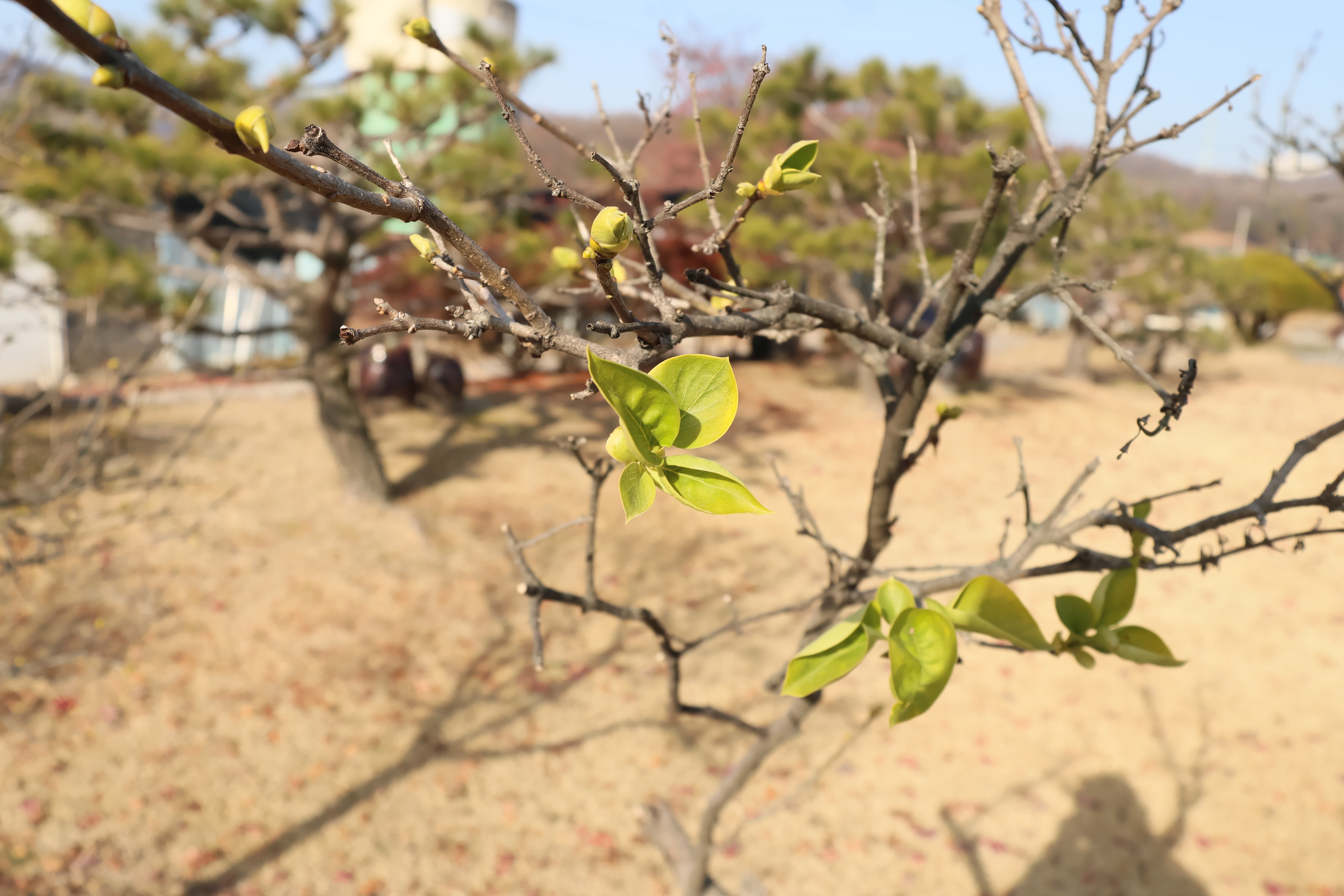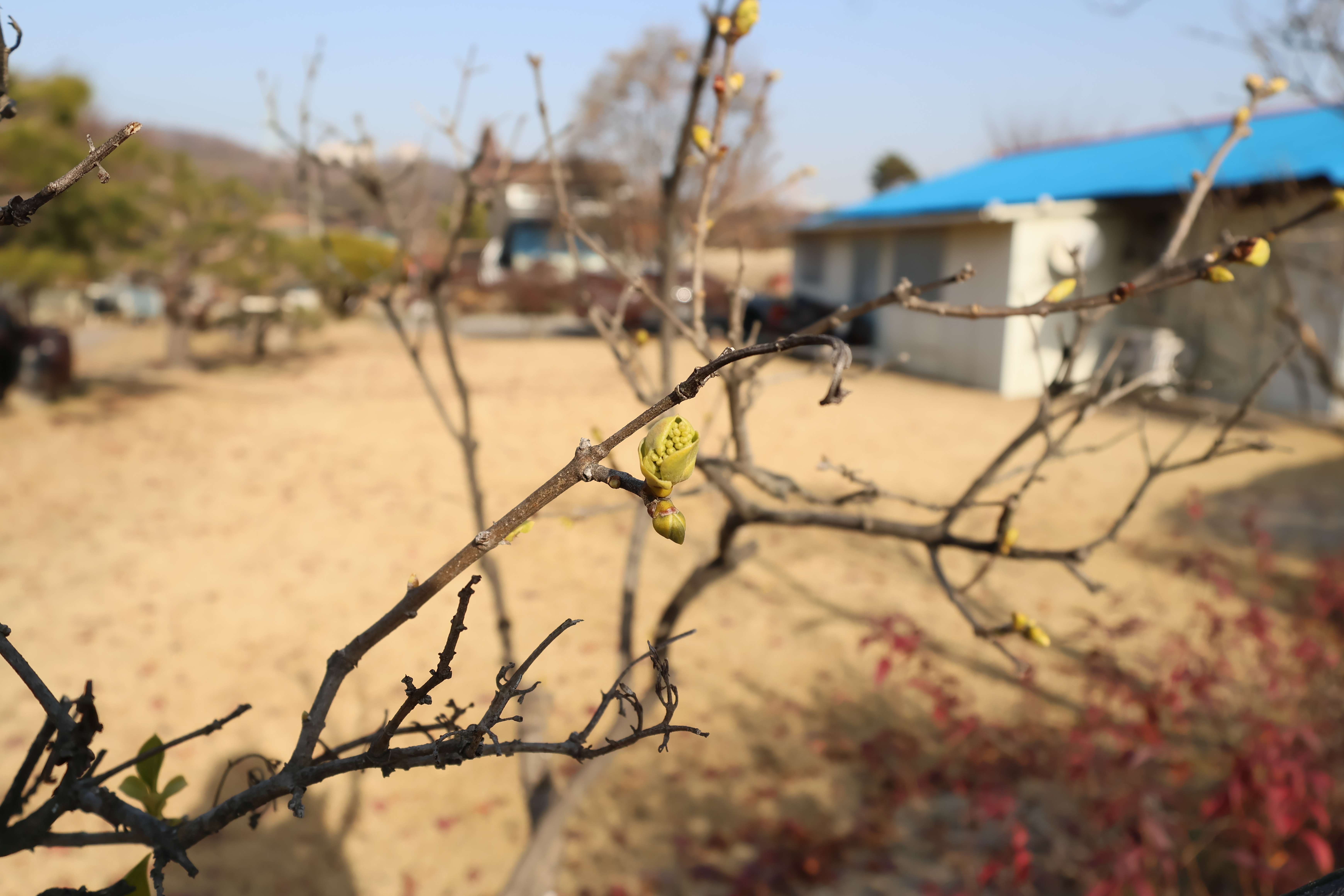 공장 건물들을 몇개 지나 걸어가면 농촌 마을이 나오는데 날씨가 따뜻하니까 라일락이 필려고 봉우리를 맺고있다.
