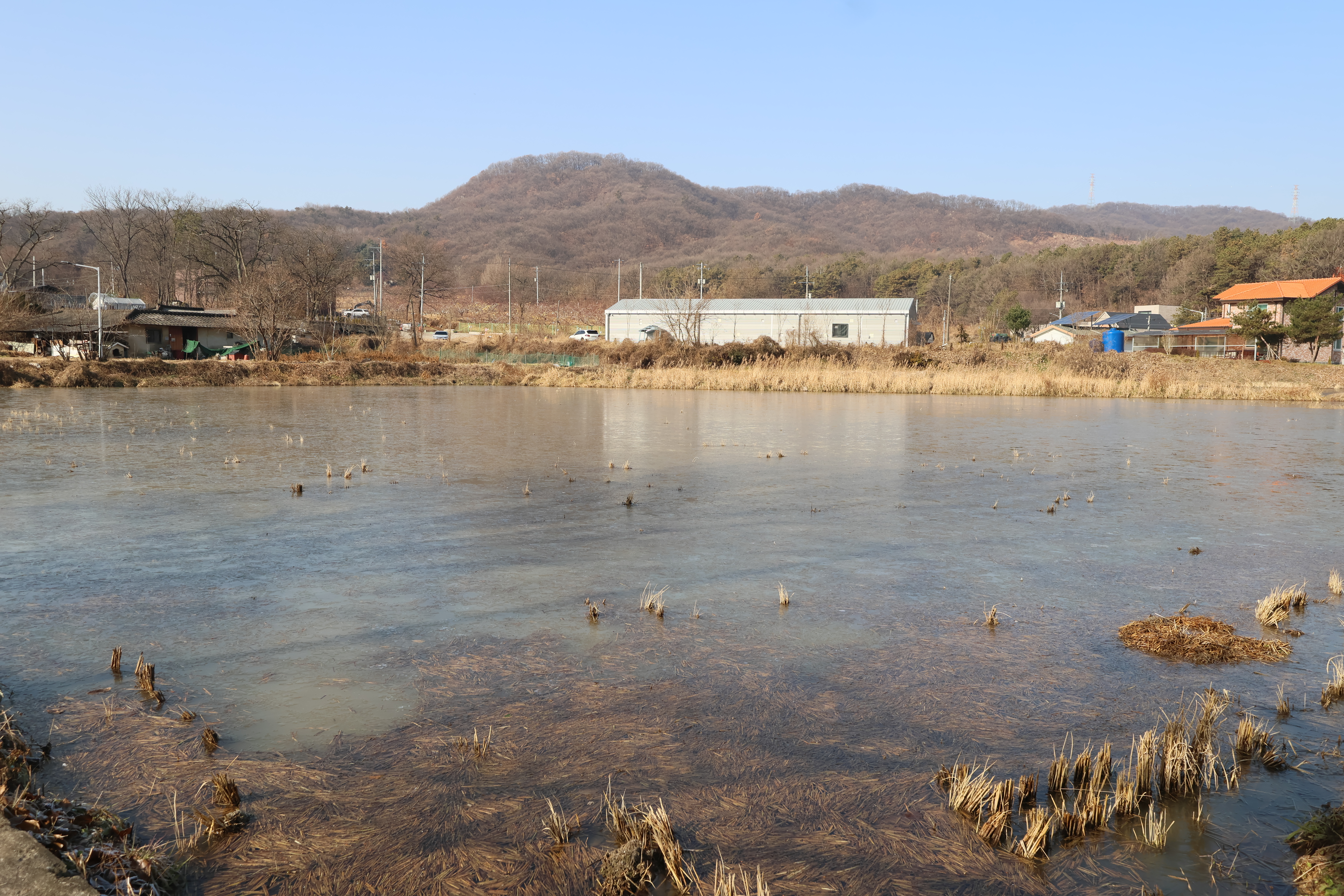 할수없이 논두렁으로 걸어서 조기 보이는 창고 뒷편 도로길로 갔음..